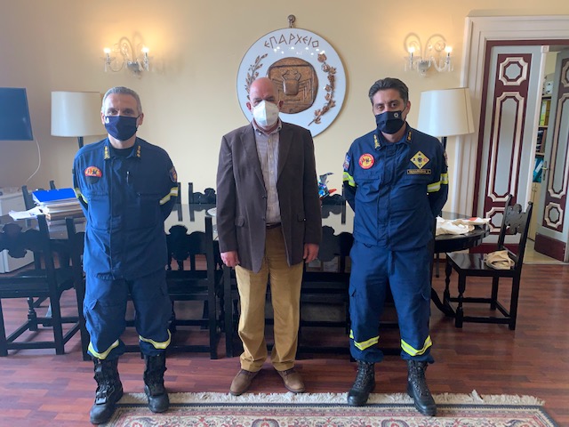 Είχαν μία εποικοδομητική συζήτηση γύρω από την πρόληψη και αντιμετώπιση πυρκαγιών και ο Έπαρχος κος Καμπανής Ιωάννης τους ευχήθηκε καλή δύναμη ενόψει της έναρξης της αντιπυρικής περιόδου διαβεβαιώνοντάς τους, ότι το Επαρχείο θα συμβάλει με κάθε μέσο στο σημαντικό έργο της διαφύλαξης της ανθρώπινης ζωής και του φυσικού περιβάλλοντος, που επιτελεί το Πυροσβεστικό Σώμα.
