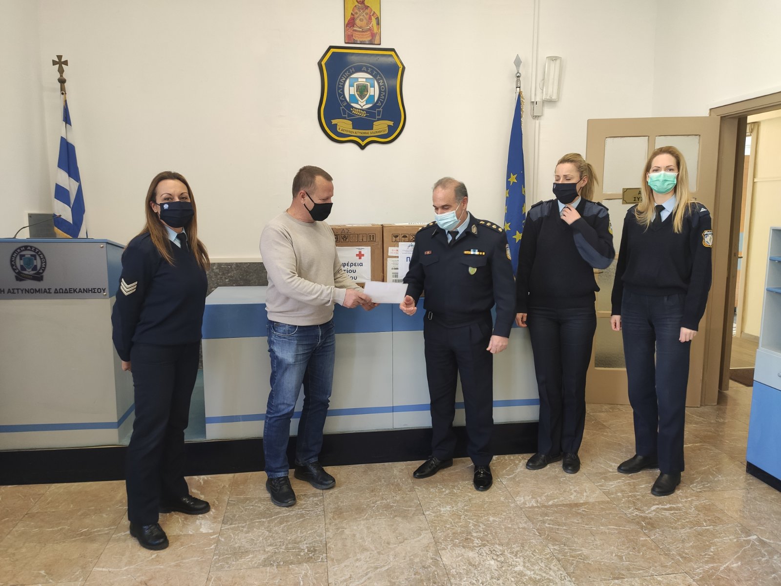Τεστ ταχείας ανίχνευσης αντιγόνου (rapid tests) παρέδωσε σήμερα ο Χωρικός Αντιπεριφερειάρχης Δωδεκανήσου, Χρήστος Ευστρατίου στην Ά Αστυνομική Διεύθυνση Δωδεκανήσου και στον Αστυνομικό Διευθυντή Μιχάλη Καληωράκη, για την υποβοήθηση του έργου της, από τη μεγάλη προμήθεια rapid tests, στην οποία προχώρησε η Περιφέρεια, με απόφαση του Περιφερειάρχη Νοτίου Αιγαίου Γιώργου Χατζημάρκου, στο πλαίσιο της λήψης μέτρων για την αντιμετώπιση και τον περιορισμό της διασποράς του κορωνοϊού στην κοινότητα.