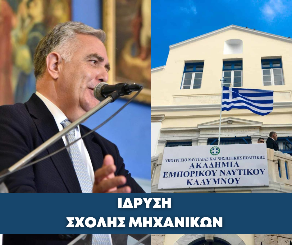 « Το μεγάλο όνειρο και το προσωπικό μου στοίχημα για την ναυτομάνα μας Κάλυμνο επετεύχθη. Η έκδοση του ΠΔ περί της Ίδρυσης, οργάνωσης, διοίκησης και λειτουργίας της Σχολής Μηχανικών της Ακαδημίας Εμπορικού Ναυτικού Καλύμνου είναι γεγονός. Ένα μεγάλο ευχαριστώ στον Πρωθυπουργό Κυριάκο Μητσοτάκη, που πρώτος υποσχέθηκε την υλοποίηση της στο νησί μας, τον Υπουργό Εμπορικής Ναυτιλίας Γιάννη Πλακιωτάκη, τον Γενικό Γραμματέα Αιγαίου και Νησιωτικής Πολιτικής Μανώλη Κουτουλάκη, όπως επίσης όλους τους συνεργάτες τους που συνέβαλαν στην υλοποίηση της προσπάθειας αυτής Το υποσχεθήκαμε, το υλοποιήσαμε. Η Κάλυμνος μας το αξίζει.