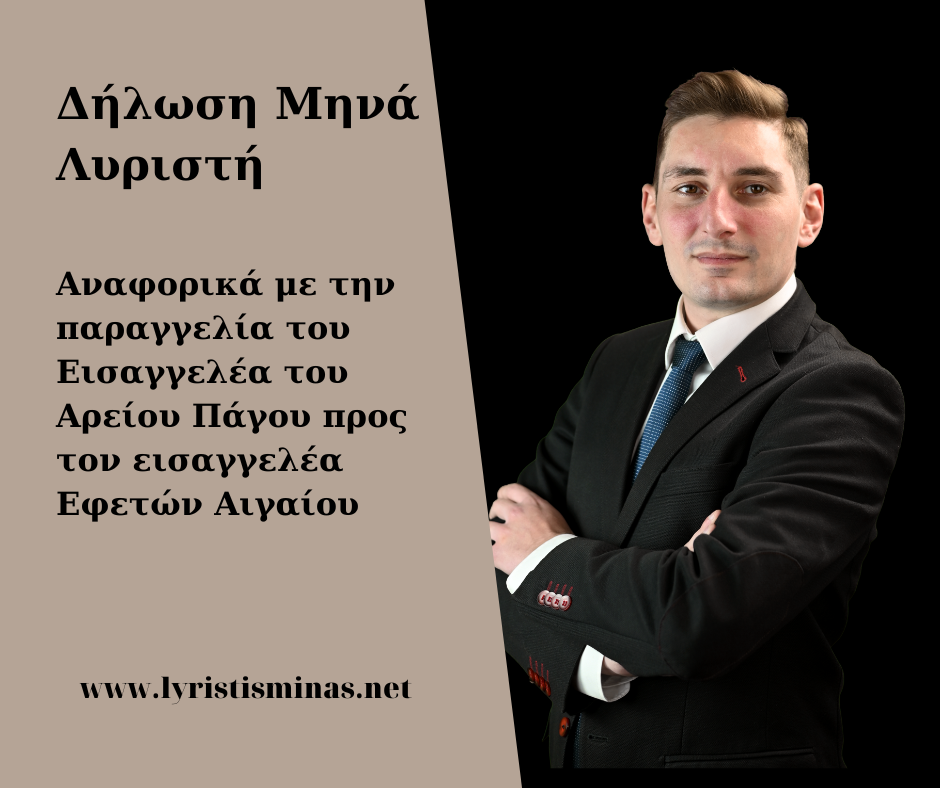 Δήλωση σχετικά με την παραγγελία του Εισαγγελέα του Αρείου Πάγου προς τον Εισαγγελέα Εφετών Αιγαίου