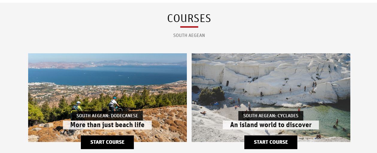 Για τα Δωδεκάνησα, στην πρώτη φάση της εκπαιδευτικής δράσης παρουσιάζονται η Ρόδος και η Κως, μέσα από την εκπαιδευτική ενότητα με τίτλο “More than just beach life”, η οποία περιέχει πέντε θεματικές: “Rhodes is made for couples and families”, “Rhodes: the healthy gourmet island”, “Unforgettable outdoor experiences in Rhodes”, “The delicious cuisine of Kos” και “Kos is a playground for active people”.