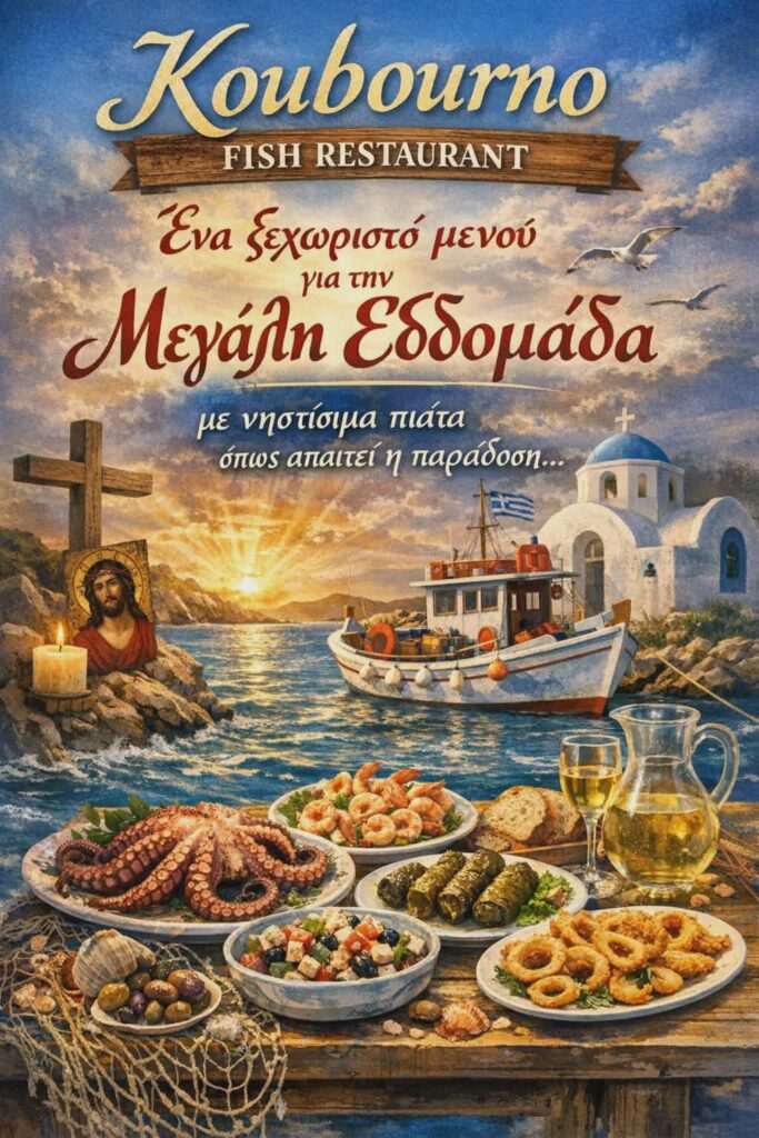 Φέτος το Πάσχα, η γεύση έχει έναν προορισμό που συνδυάζει την κατάνυξη της Μεγάλης Εβδομάδας με τη λαμπρή γιορτή της Ανάστασης. Το Koubourno Fish Restaurant σας προσκαλεί σε ένα γαστρονομικό ταξίδι δίπλα στο κύμα, τιμώντας τις παραδόσεις μας με τον πιο εκλεκτό τρόπο.