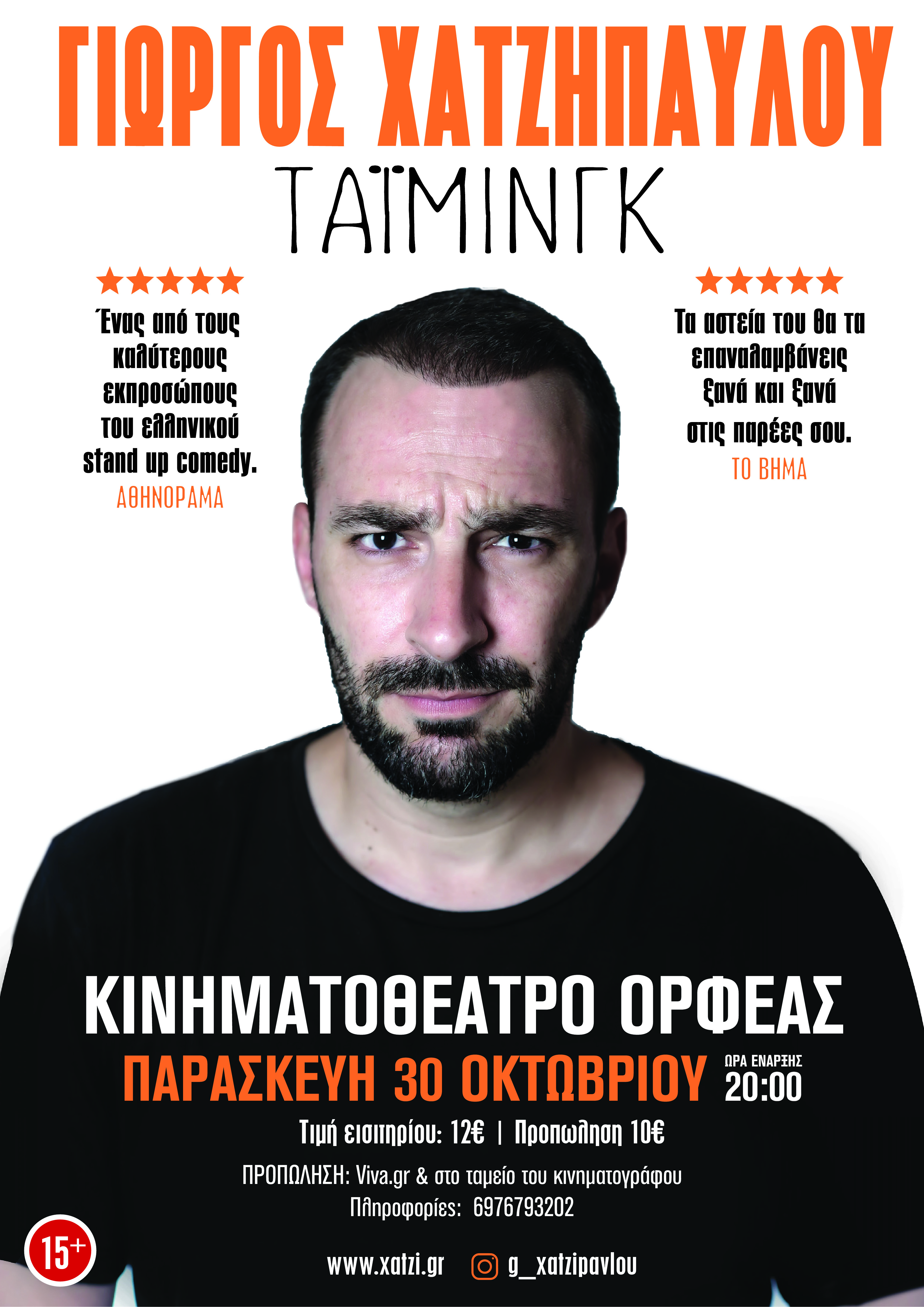 ΟΡΦΕΑΣ: STAND UP COMEDY: ΓΙΩΡΓΟΣ ΧΑΤΖΗΠΑΥΛΟΥ «ΤΑΙΜΙΝΓΚ» ΠΑΡΑΣΚΕΥΗ 30/10 20:00
