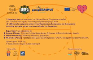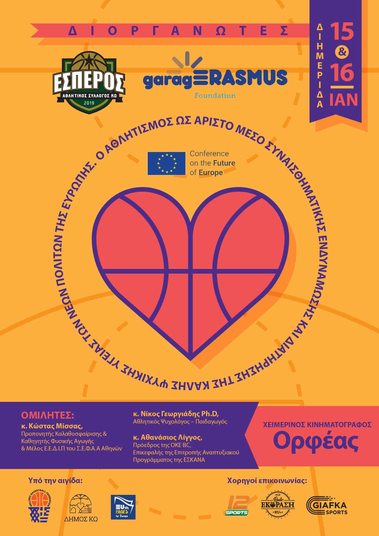 στο πλαίσιο των εκδηλώσεων της Διάσκεψης για το Μέλλον της Ευρώπης (Conference on the Future of Europe), συνδιοργανώνει ο Δήμος Κω, με τον οργανισμό GaragErasmus και την πρέσβειρα 4EUFuture κα Ελευθερία Σκέτου, τον Αθλητικό Σύλλογο «ΕΣΠΕΡΟΣ ΚΩ» και την Ελληνική Ομοσπονδία Καλαθοσφαίρισης.