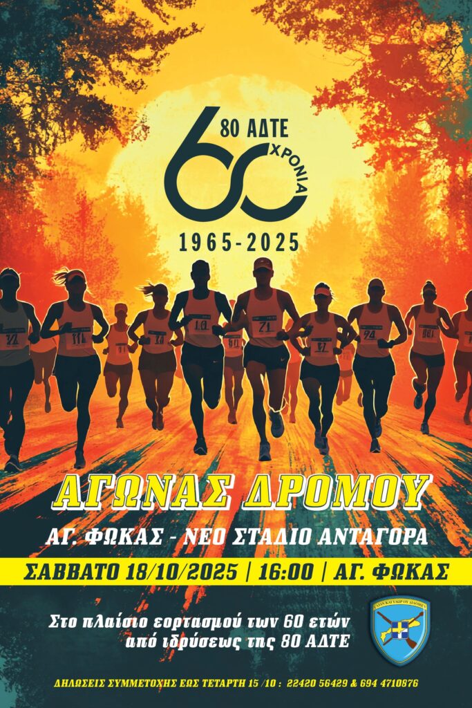 Αγώνας δρόμου για τον εορτασμό των 60 ετών της 80 ΑΔΤΕ – Από τον Άγιο Φωκά στο νέο στάδιο «ΑΝΤΑΓΟΡΑΣ»