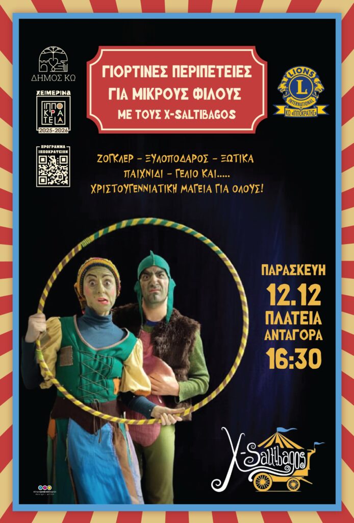 «Γιορτινές περιπέτειες για μικρούς φίλους»: ΔΙΑΔΡΑΣΤΙΚΗ ΧΡΙΣΤΟΥΓΕΝΝΙΑΤΙΚΗ ΕΚΔΗΛΩΣΗ ΓΙΑ ΠΑΙΔΙΑ σε συνδιοργάνωση του Τμήματος Πολιτισμού Δήμου Κω και της Λέσχης Lions Κω «Ο Ιπποκράτης».