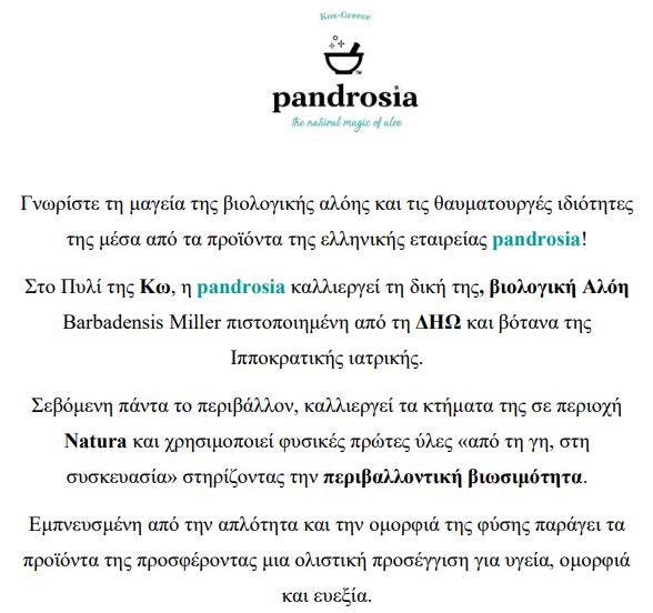 της μέσα από τα προϊόντα της ελληνικής εταιρείας pandrosia!