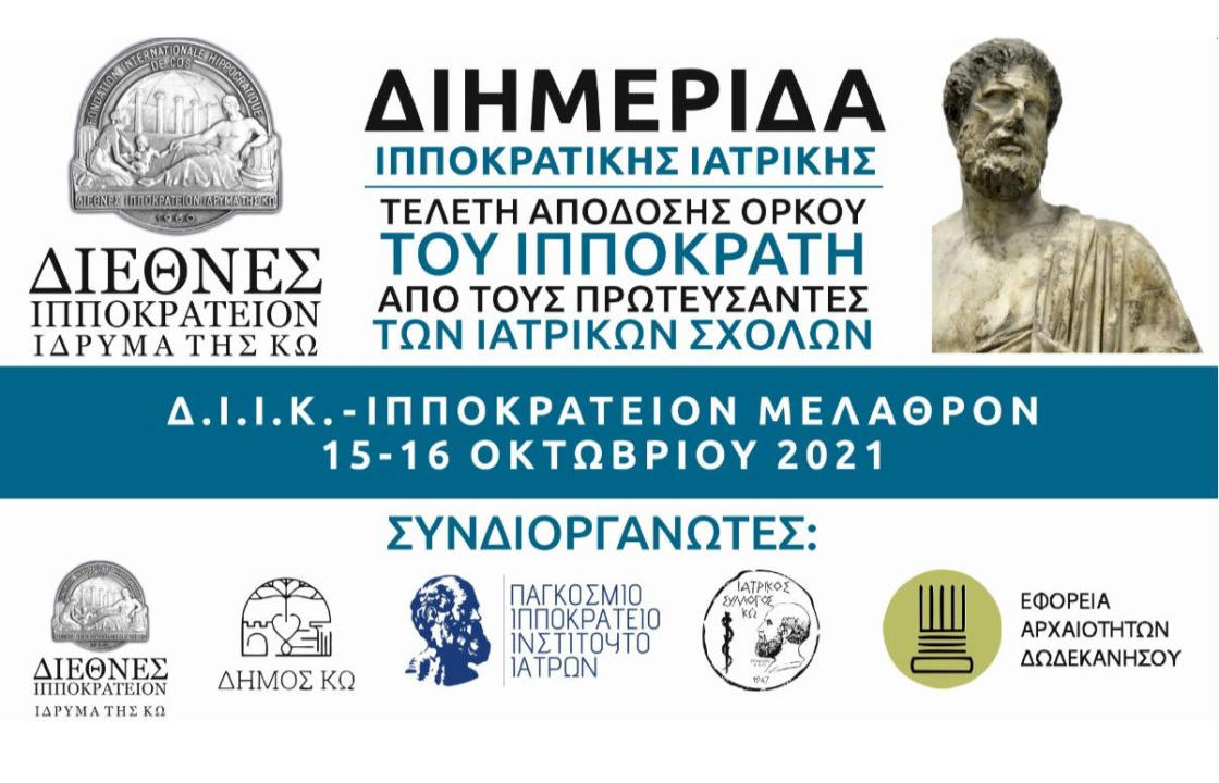 Το ΔΙΙΚ σας προσκαλεί στην διημερίδα που διοργανώνει στο Ιπποκρατικό Μέλαθρο, στις 15 και 16 Οκτωβρίου με θέμα: «Ιπποκρατική Ιατρική και Όρκος» και στη βράβευση – απόδοση του όρκου από τους πρωτεύσαντες αριστούχους των Ιατρικών Σχολών Ελλάδος – εξωτερικού, του ακαδημαϊκού έτους 2020-21 στο Ασκληπιείο.