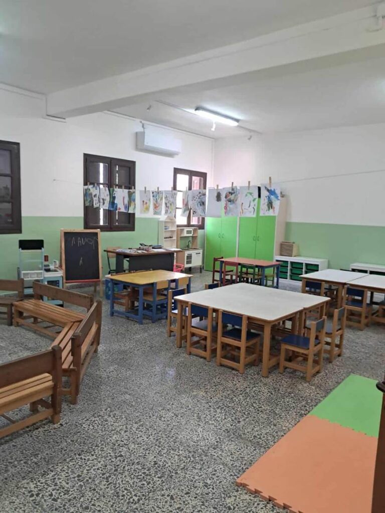 Το κτήριο, που για δεκαετίες έμενε σιωπηλό και ανενεργό, μετατράπηκε ύστερα από συστηματική και επίμονη προσπάθεια σε έναν σύγχρονο και φιλόξενο χώρο για τα παιδιά της προσχολικής ηλικίας.