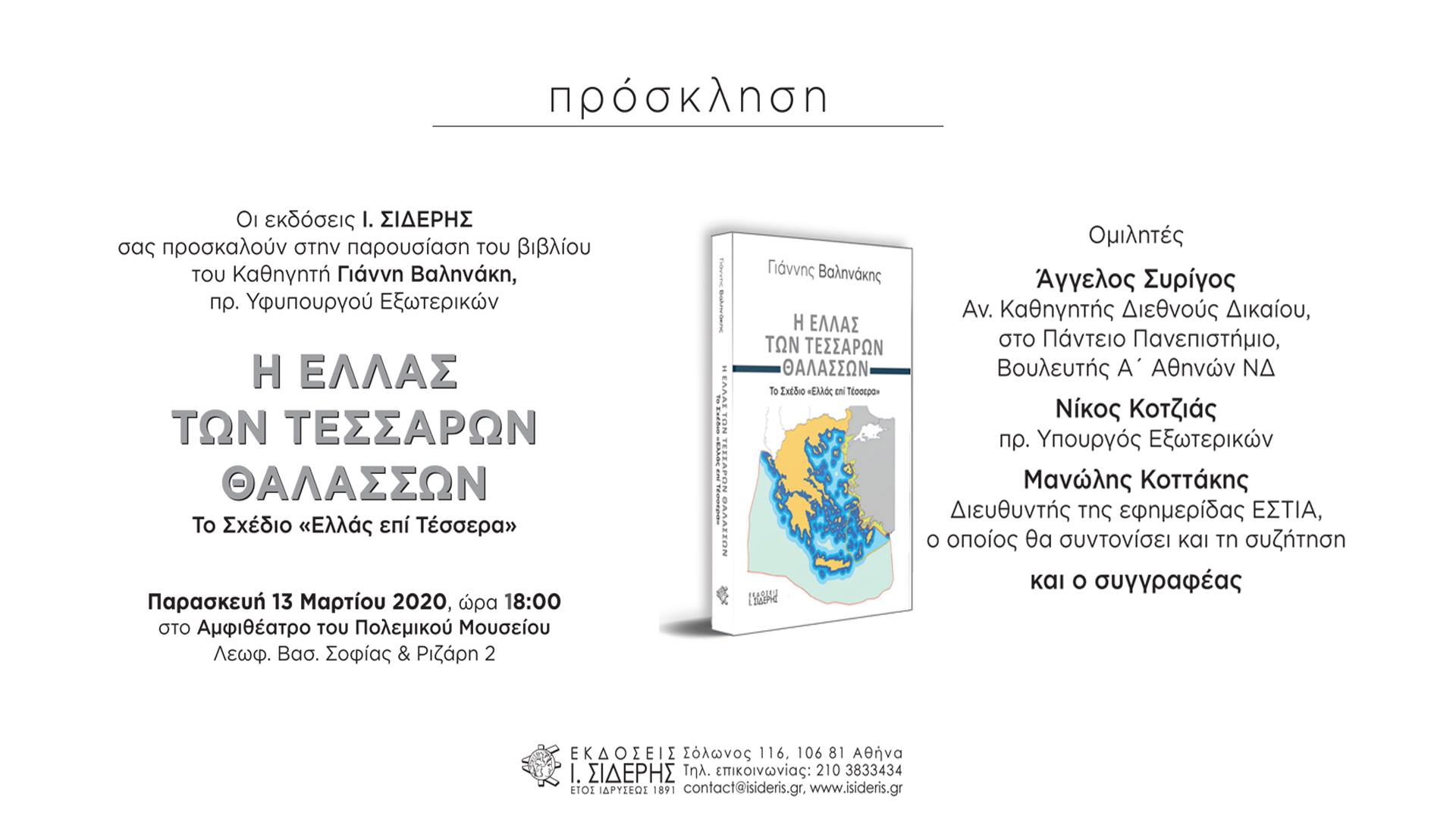 “Ελλάς των Τεσσάρων Θαλασσών”: Η επίσημη παρουσίαση του βιβλίου του καθηγητή – τέως υφυπουργού Γιάννη Βαληνάκη