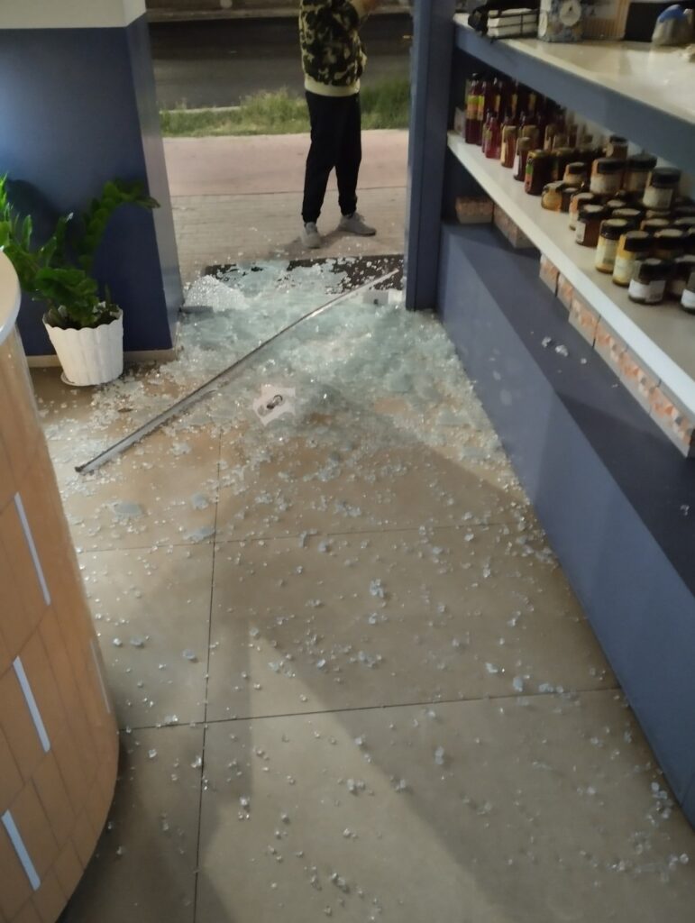 Το ευτύχημα είναι ότι την ώρα που ο δράστης πέταξε την πέτρα, δεν υπήρχε κάποιος πίσω από την γυάλινη πόρτα που θα μπορούσε να τραυματιστεί είτε από την πέτρα είτε από τα τζάμια.