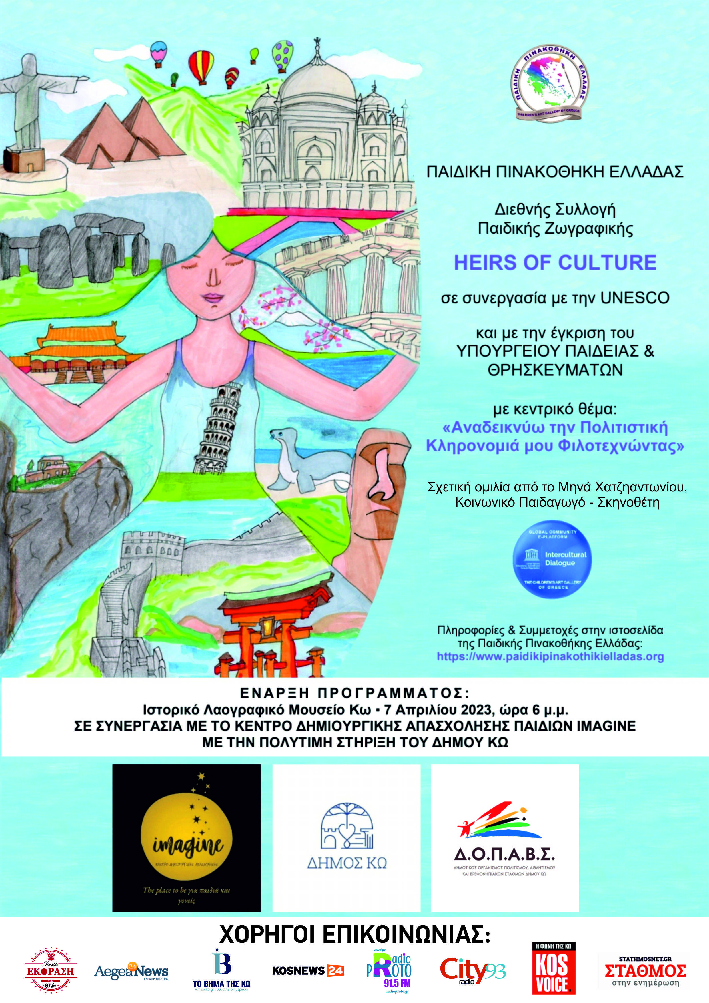Η ΠΑΙΔΙΚΗ ΠΙΝΑΚΟΘΗΚΗ ΕΛΛΑΔΑΣ δημιουργεί την διεθνή συλλογή παιδικής ζωγραφικής HEIRS OF CULTURE σε συνεργασία με την UNESCO και με την έγκριση του ΥΠΟΥΡΓΕΙΟΥ ΠΑΙΔΕΙΑΣ & ΘΡΗΣΚΕΥΜΑΤΩΝ με κεντρικό θέμα: