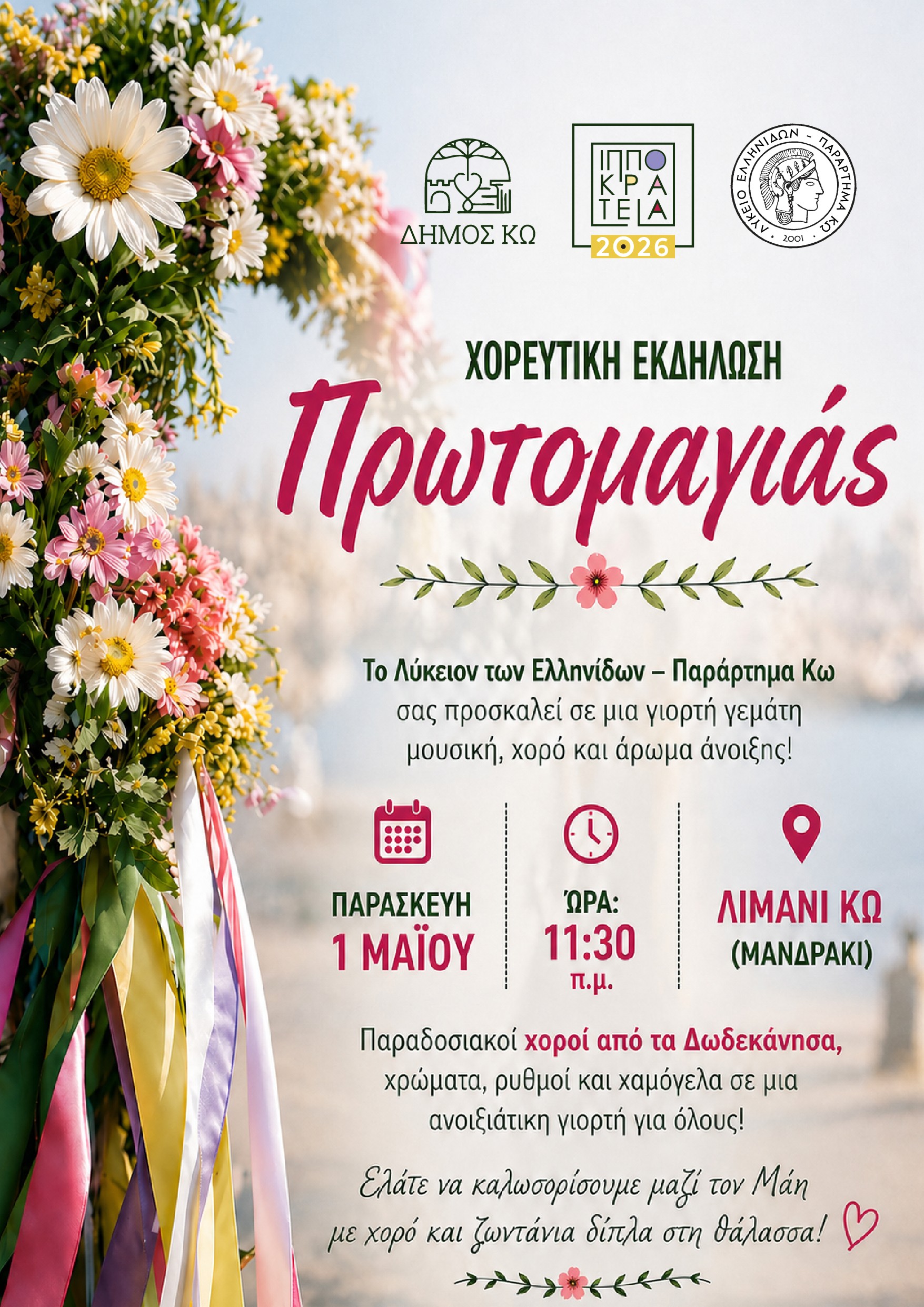 ΜΟΥΣΙΚΟΧΟΡΕΥΤΙΚΗ ΕΚΔΗΛΩΣΗ ΠΡΩΤΟΜΑΓΙΑΣ σε συνεργασία με το ΛΥΚΕΙΟ ΤΩΝ ΕΛΛΗΝΙΔΩΝ -παράρτημα ΚΩ