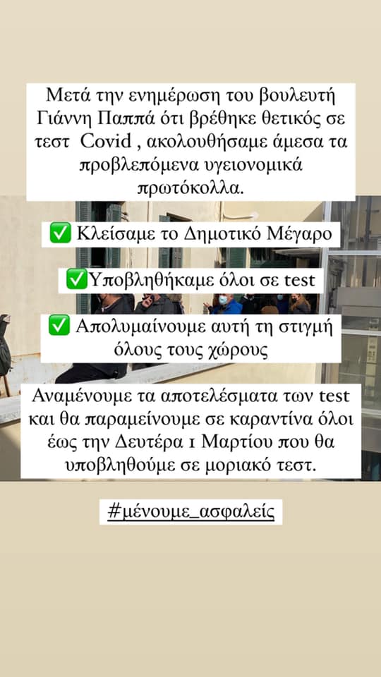 Μετά την ενημέρωση του βουλευτή Γιάννη Παππά ότι βρέθηκε θετικός σε τεστ Covid , ακολουθήσαμε άμεσα τα προβλεπόμενα υγειονομικά πρωτόκολλα.
