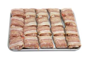 Ρολά κοτόπουλου γεμιστά με γεύσεις της επιλογής σας, έτοιμα για ψήσιμο.