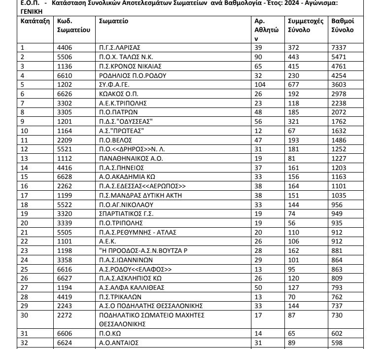 Στην 26η θέση επί συνόλου 78 σωματείων σε όλη την Ελλάδα ο σύλλογός μας
