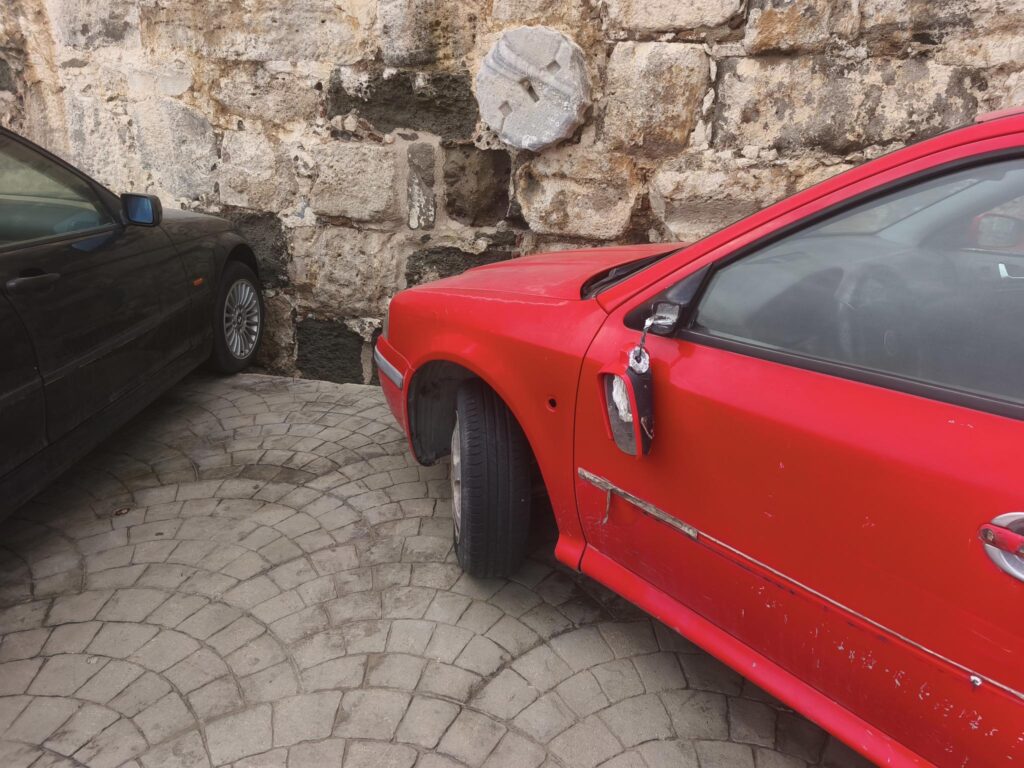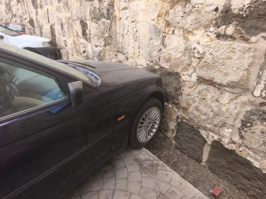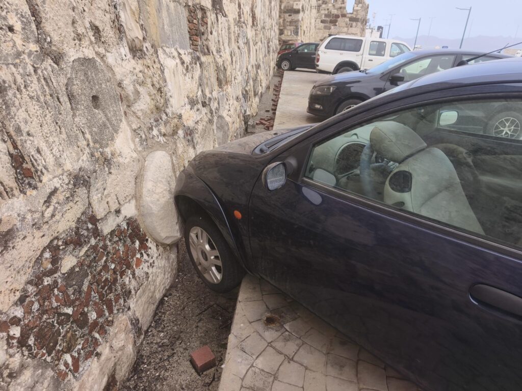 Eπίσης στο δρόμο του Κάστρου, παρασύρθηκαν παρκαρισμένα αυτοκίνητα τα οποία συγκρούστηκαν μεταξύ τους ή πάνω στο τείχος του κάστρου και υπέστησαν ζημιές.