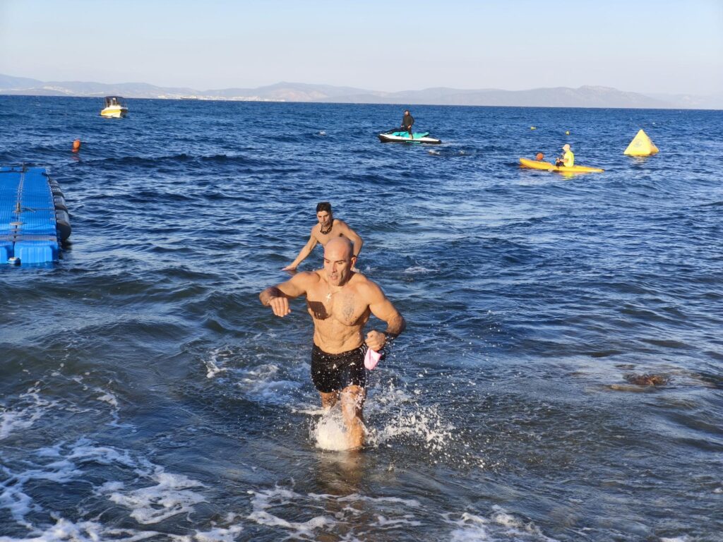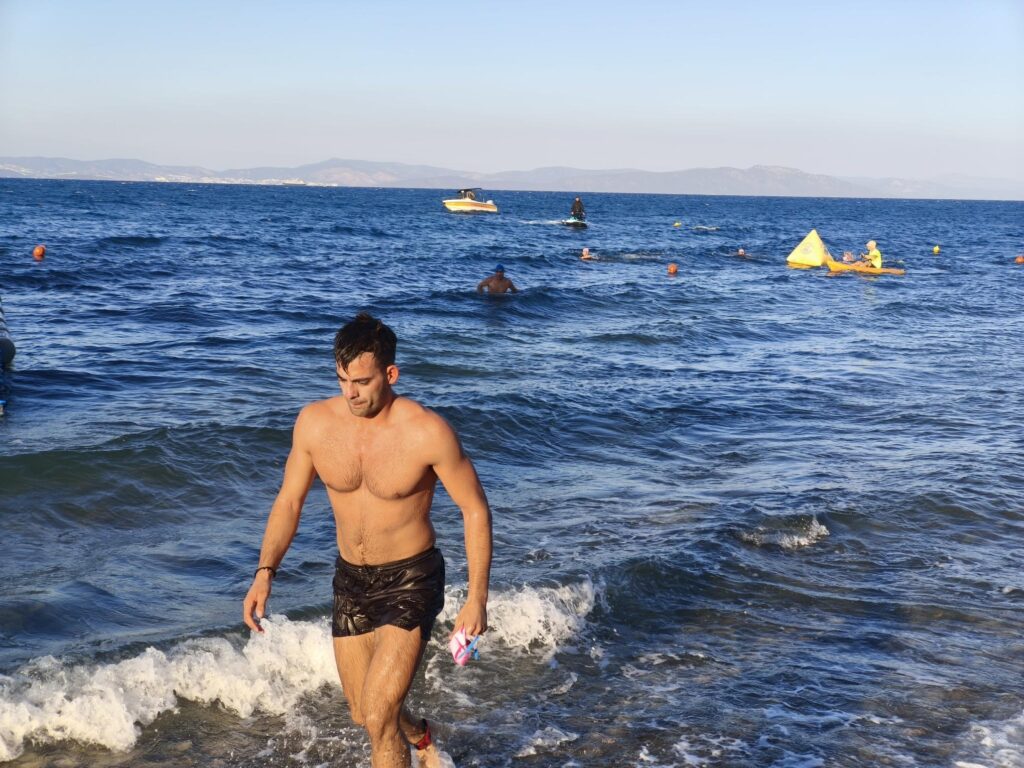 Στα 100 μέτρα κολύμβησης, πρώτος τερμάτισε ο Ηλίας Μακρόπουλος.