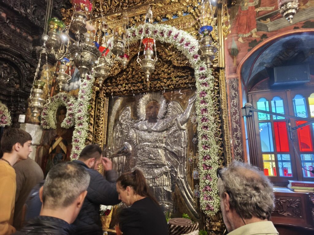 Μέσα σε κλίμα βαθιάς κατάνυξης, οι πιστοί συμμετείχαν στις ιερές ακολουθίες και προσκύνησαν με ευλάβεια τη θαυματουργή εικόνα του Ταξιάρχη Αρχάγγελου Μιχαήλ, ζητώντας τη βοήθεια και την ευλογία του.