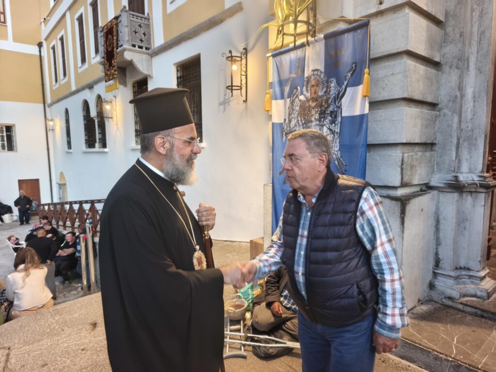 Το απόγευμα, με το τελευταίο δρομολόγιο που αναχώρησε από το μικρό λιμανάκι του Πανορμίτη, ο Μητροπολίτης Χρυσόστομος βρέθηκε εκεί για να αποχαιρετήσει τους προσκυνητές από την Κω και τη Λέρο, ανταλλάσσοντας ευχές και λόγια συγκίνησης, σε μια εικόνα που συμπύκνωσε όλο το πνεύμα αγάπης και πίστης που χαρακτήρισε τον φετινό εορτασμό.