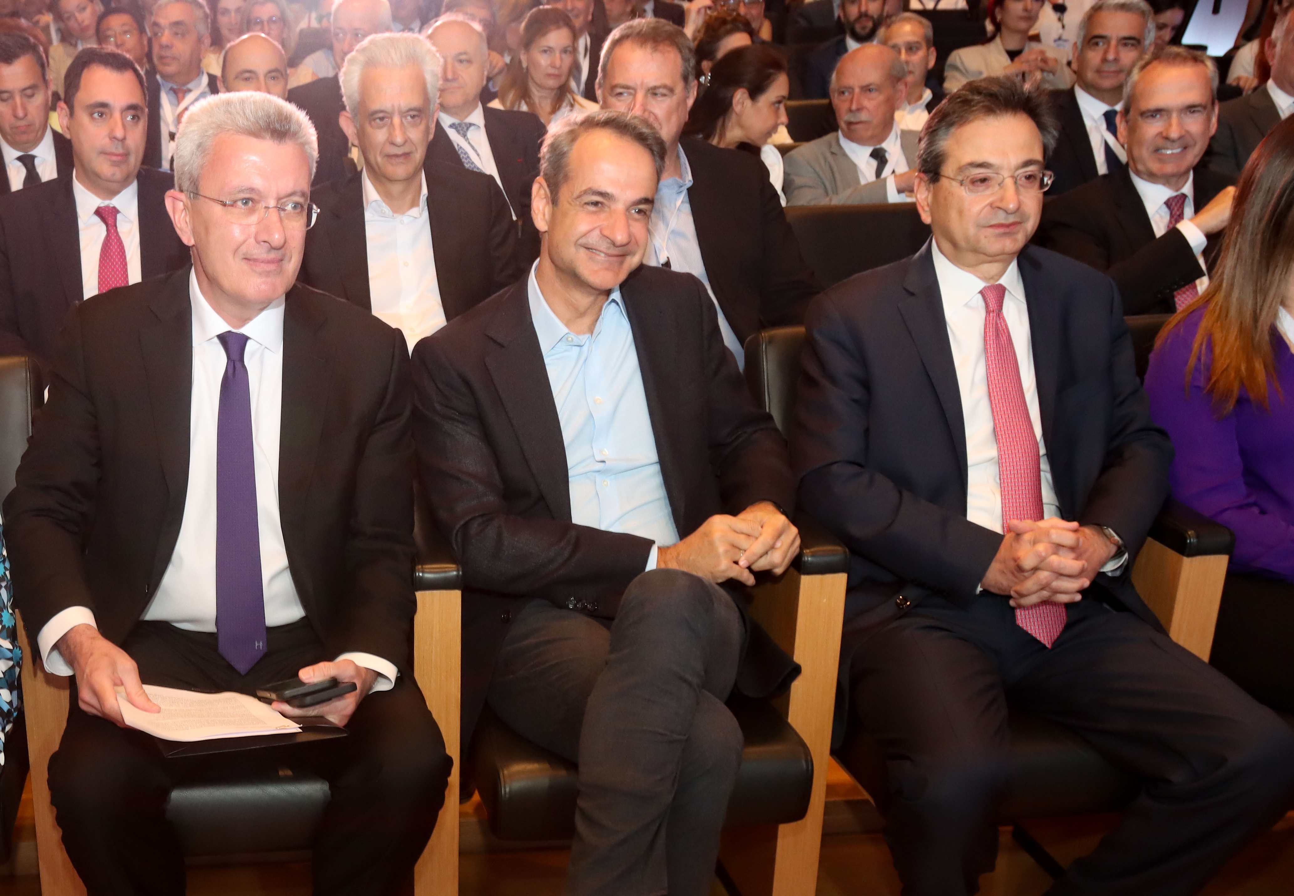Από αριστερά οι κ.κ.: Νίκος Χατζηνικολάου, Κυριάκος Μητσοτάκης, Φωκίων Καραβίας.