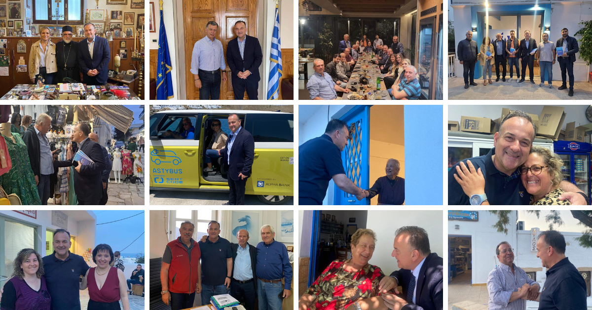 Καθημερινές και αργίες, ο υπ. Βουλευτής Δωδεκανήσου Ν.Δ. Γιάννης Παππάς οργώνει νησιά και χωριά, όπου, με συναισθηματική φόρτιση και συγκίνηση, συναντά συμπατριώτες που έχουν στηρίξει τη μεγάλη παράταξη της Ν.Δ. και τον ίδιο προσωπικά, καλώντας τους να ανταποκριθούν στην επόμενη εκλογική πρόκληση. Οι νησιώτες, τον υποδέχονται με τον ίδιο ενθουσιασμό για την έμπρακτη αγάπη του, τηρώντας την υπόσχεση που τους έδωσε προεκλογικά: πάντα θα αγωνίζεται γι΄αυτούς και όση περισσότερη δύναμη του δίνουν, τόσο περισσότερο και ο ίδιος, θα ανταποδίδει με πράξεις την αγάπη τους. Γι’ αυτό και η αυτοδυναμία της Νέας Δημοκρατίας έχει ιδιαίτερη σημασία.