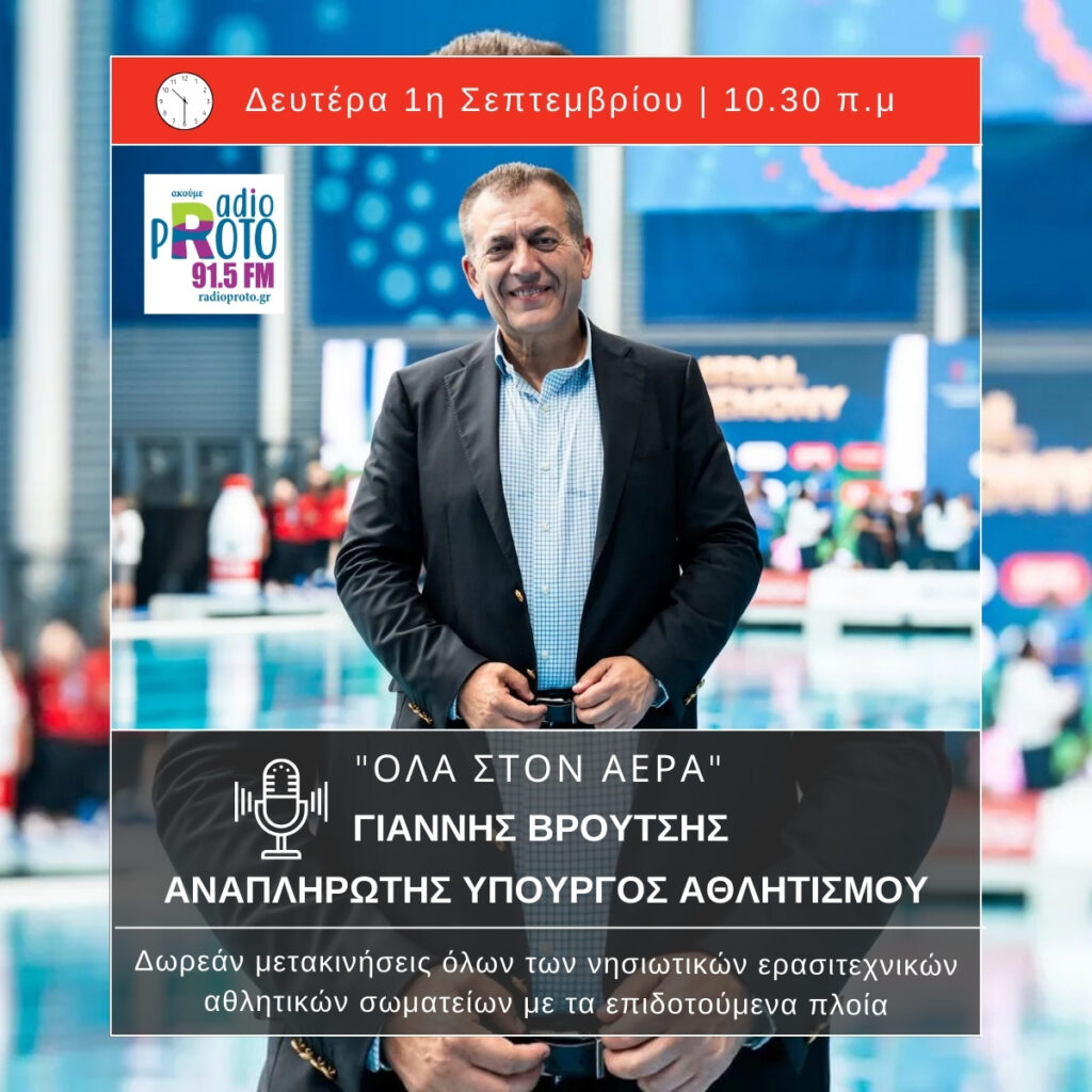 Ο Γιάννης Βρούτσης στο Ράδιο Πρώτο και Βήμα της Κω για τις δωρεάν ακτοπλοϊκές μετακινήσεις για τους νησιώτες αθλητές