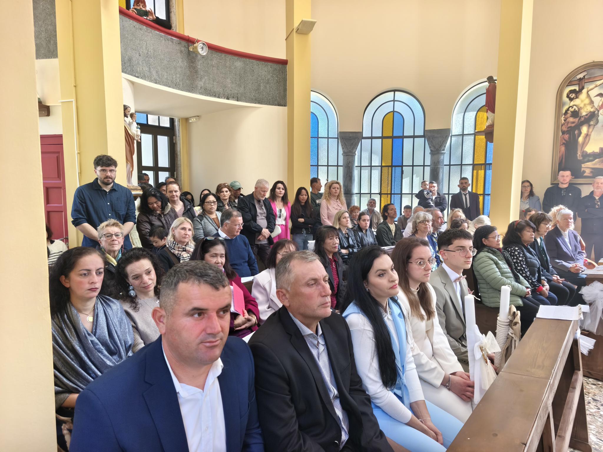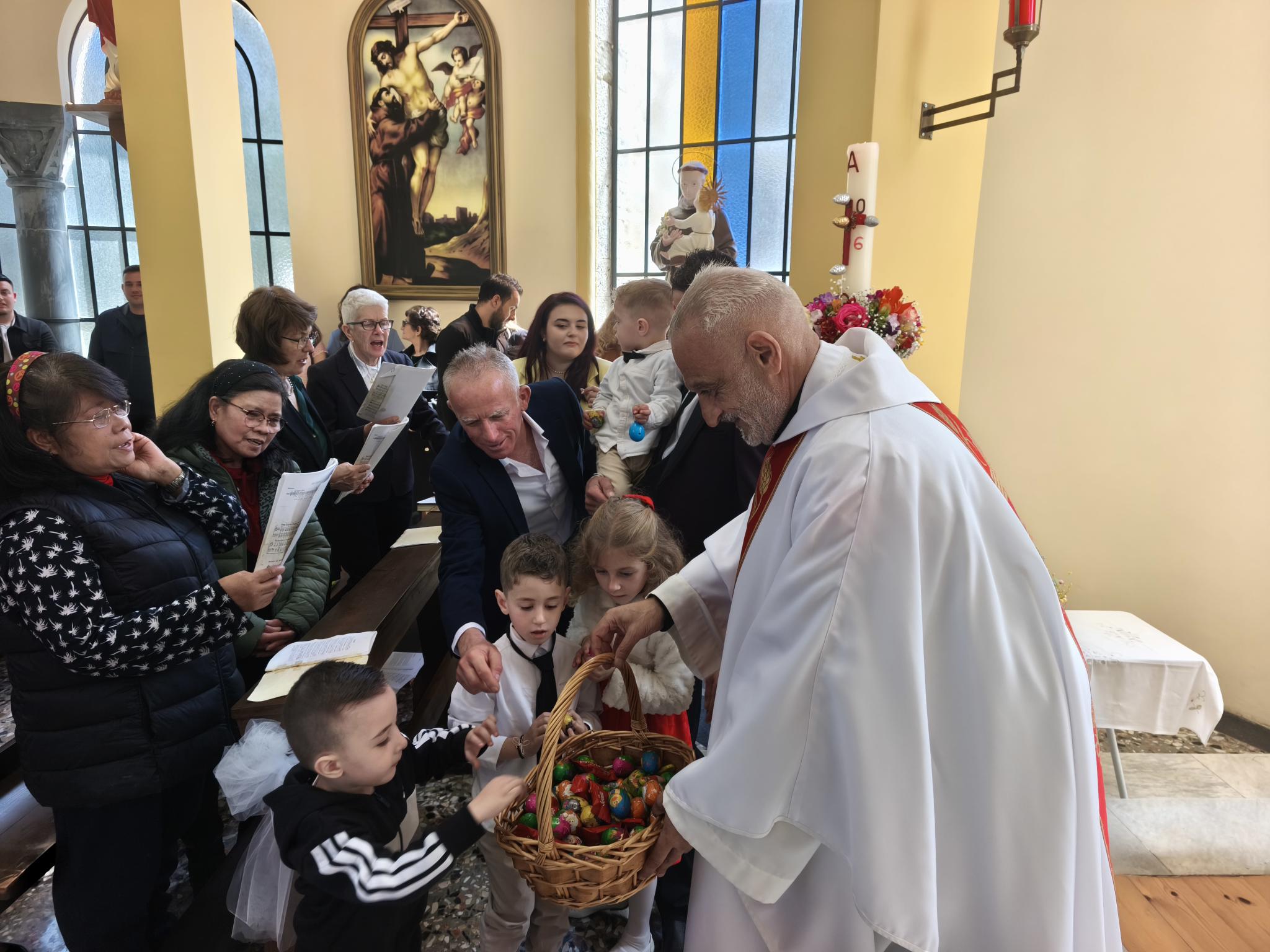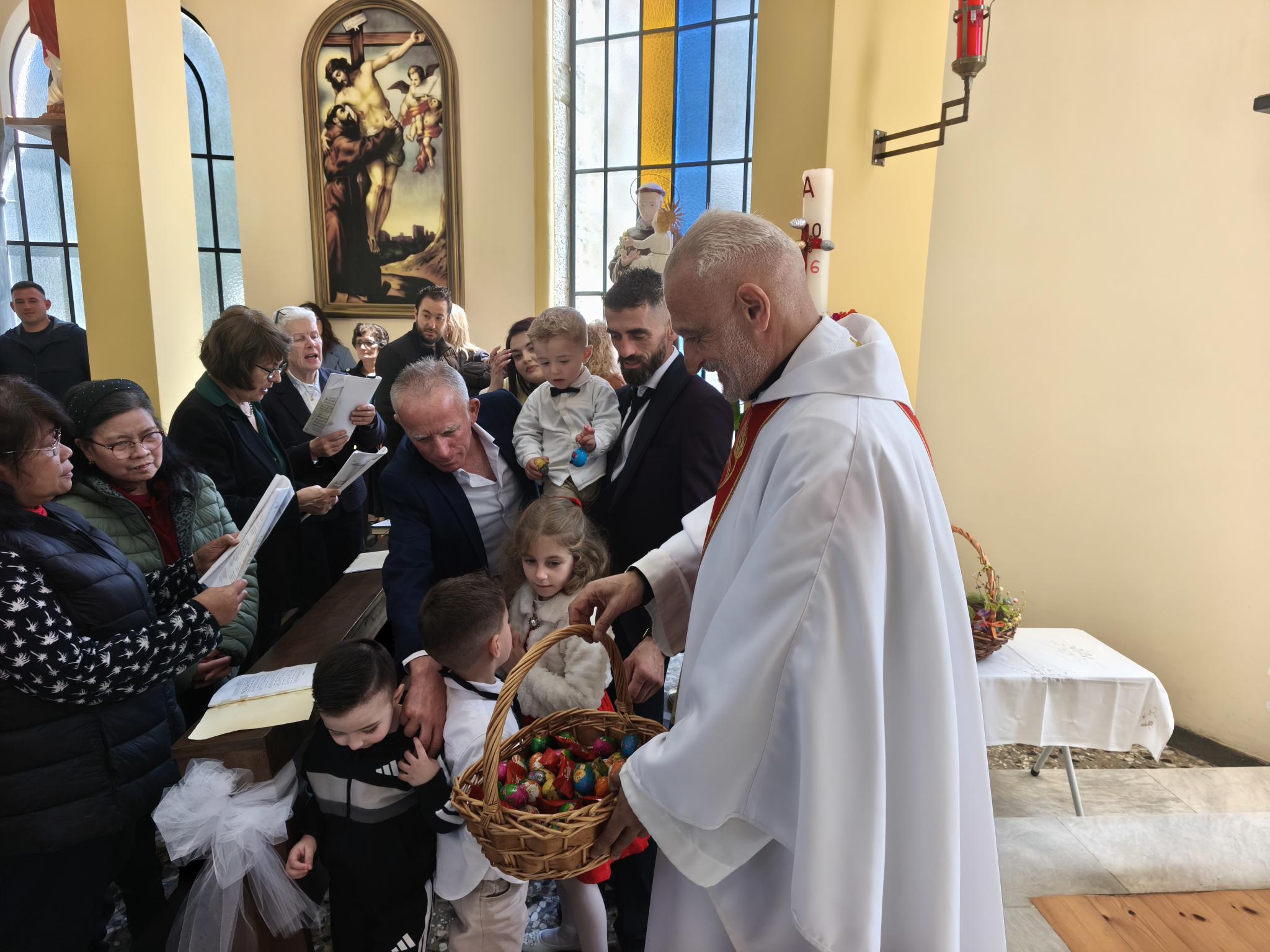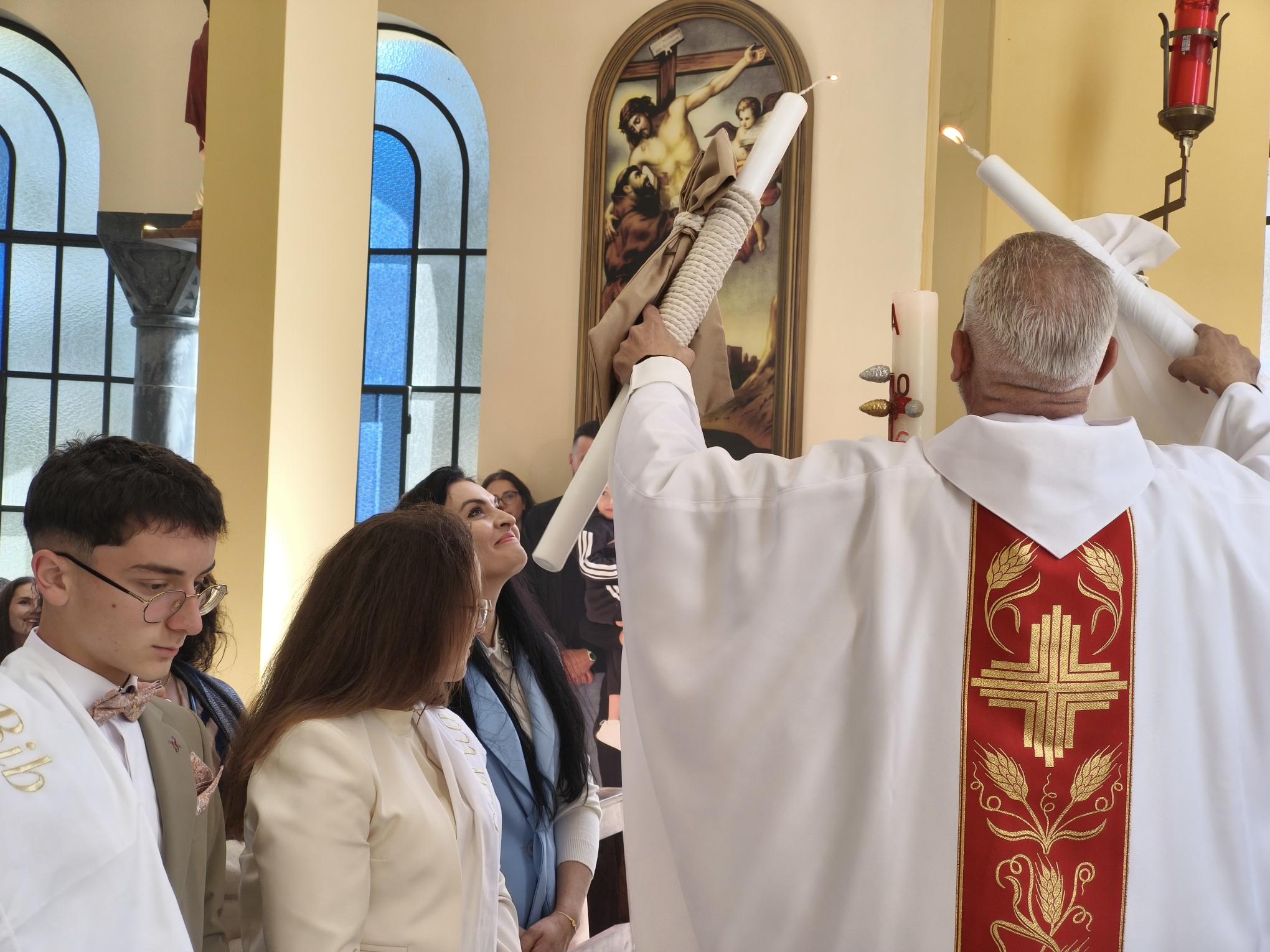 Η φετινή Αναστάσιμη λειτουργία είχε έναν επιπλέον εορταστικό τόνο, καθώς η ημέρα φωτίστηκε και με τη βάπτιση δύο νέων παιδιών. Τα αδέρφια Λαουρίτα και Μπιμπ Λεγκέγκαι βαπτίστηκαν μέσα σε κλίμα συγκίνησης, παρουσία των οικογενειών τους και ολόκληρης της ενορίας.