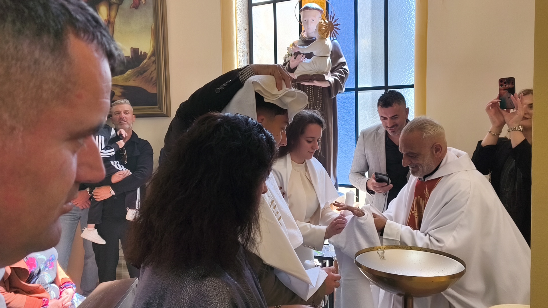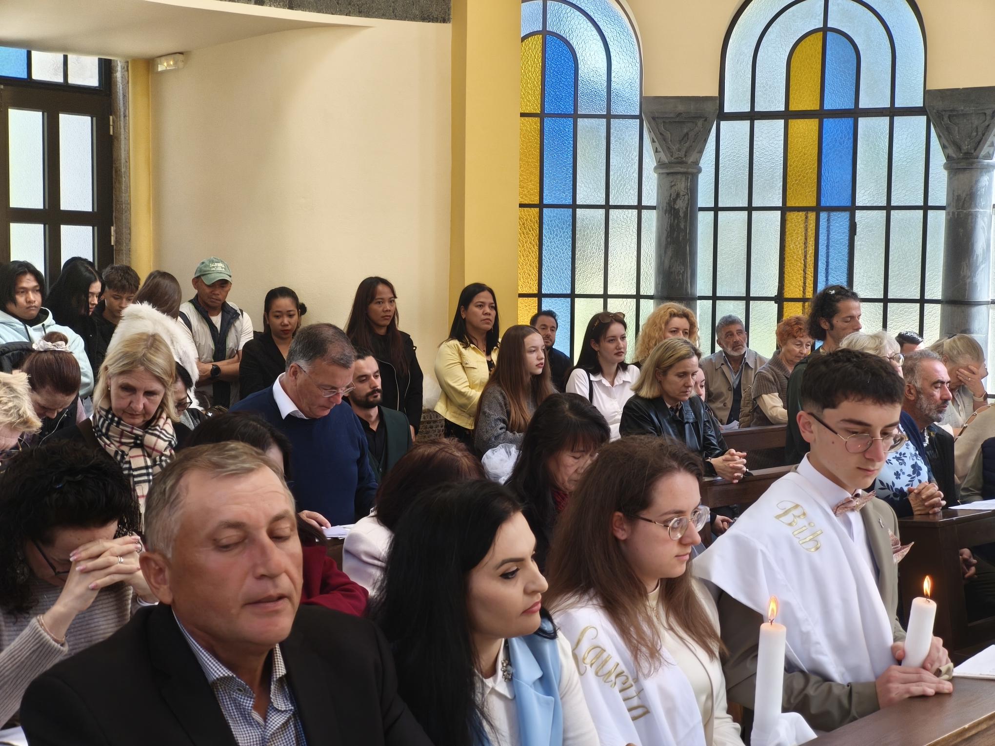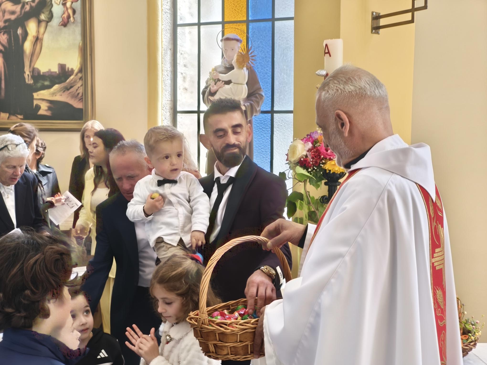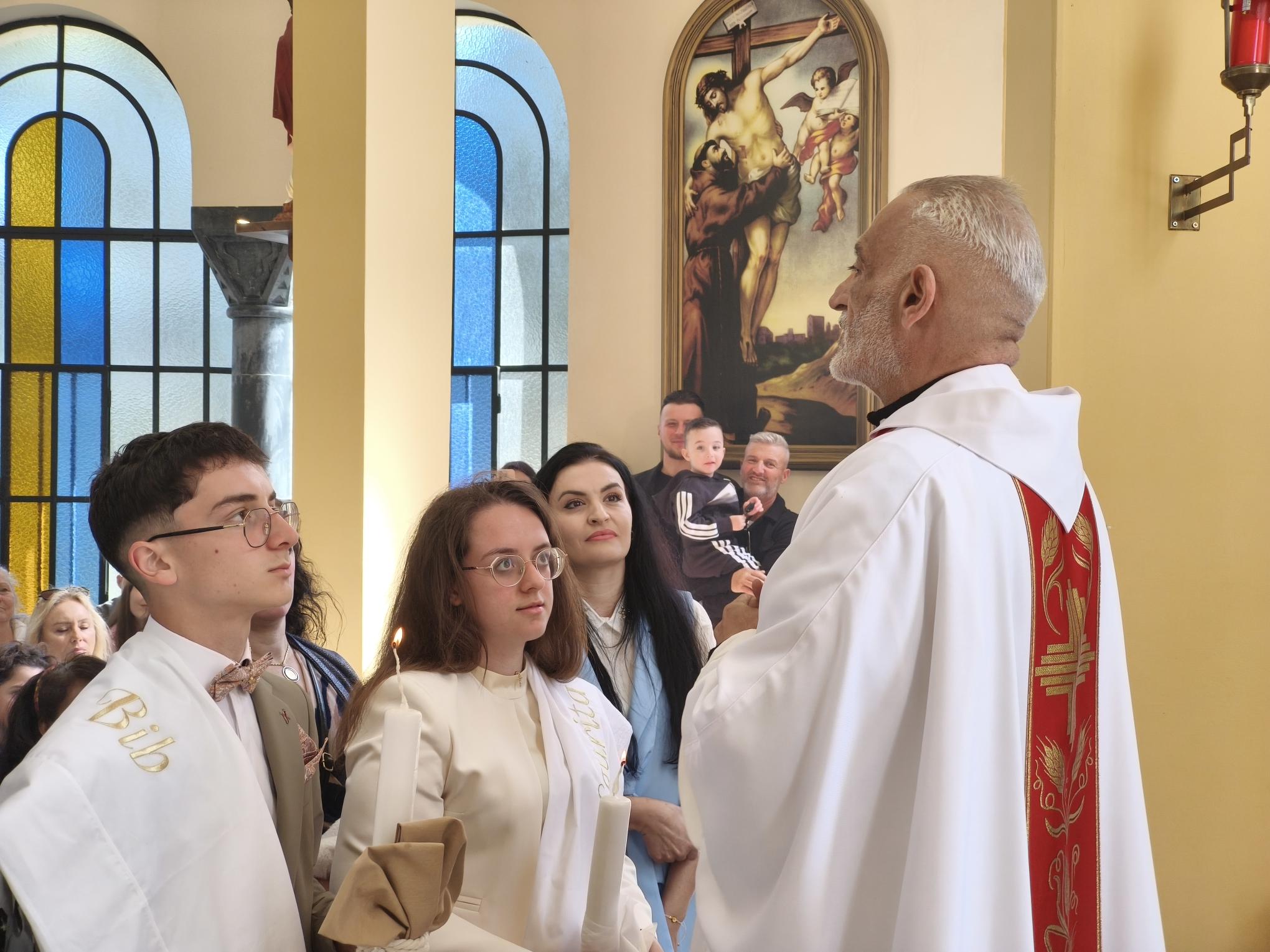 Η φετινή Αναστάσιμη λειτουργία είχε έναν επιπλέον εορταστικό τόνο, καθώς η ημέρα φωτίστηκε και με τη βάπτιση δύο νέων παιδιών. Τα αδέρφια Λαουρίτα και Μπιμπ Λεγκέγκαι βαπτίστηκαν μέσα σε κλίμα συγκίνησης, παρουσία των οικογενειών τους και ολόκληρης της ενορίας.