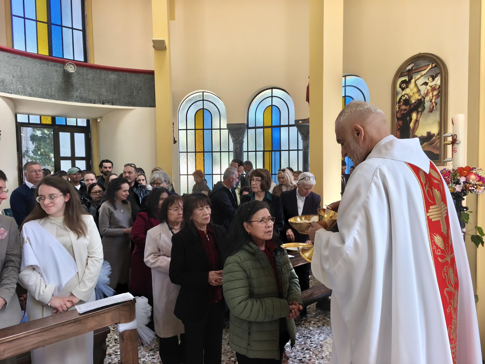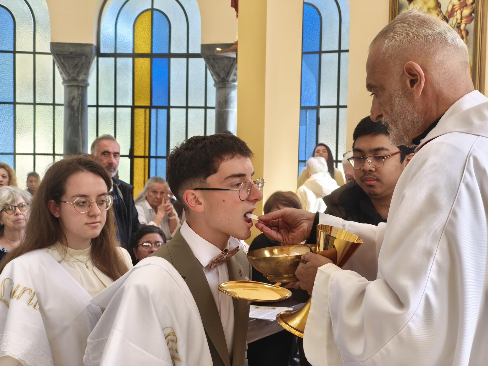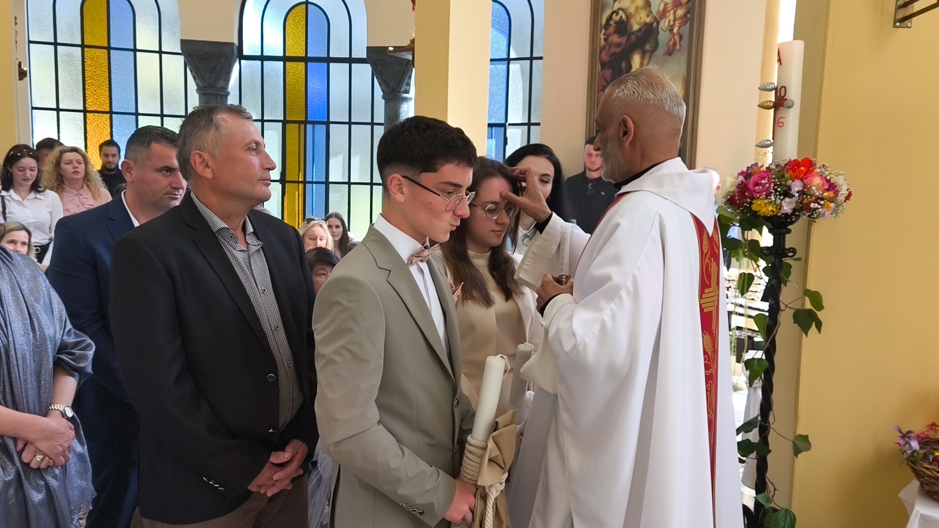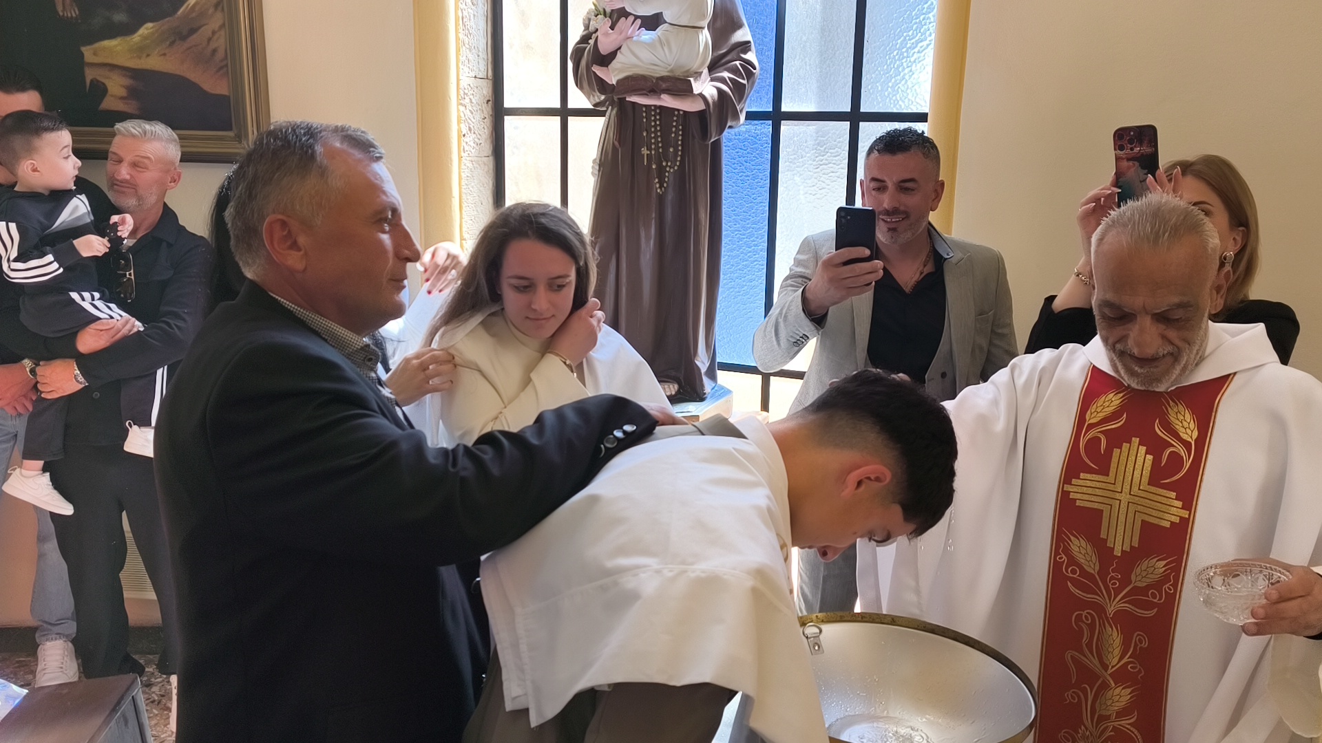 Η φετινή Αναστάσιμη λειτουργία είχε έναν επιπλέον εορταστικό τόνο, καθώς η ημέρα φωτίστηκε και με τη βάπτιση δύο νέων παιδιών. Τα αδέρφια Λαουρίτα και Μπιμπ Λεγκέγκαι βαπτίστηκαν μέσα σε κλίμα συγκίνησης, παρουσία των οικογενειών τους και ολόκληρης της ενορίας.