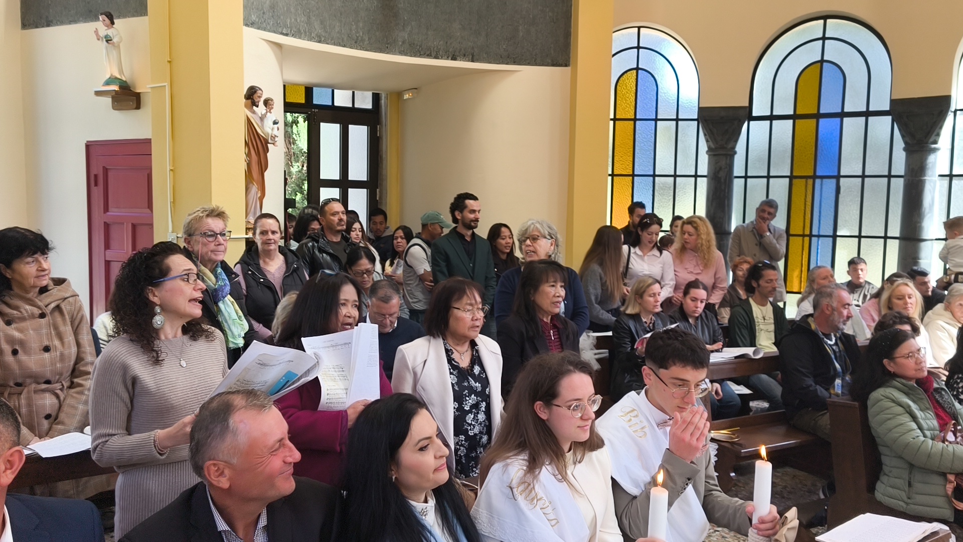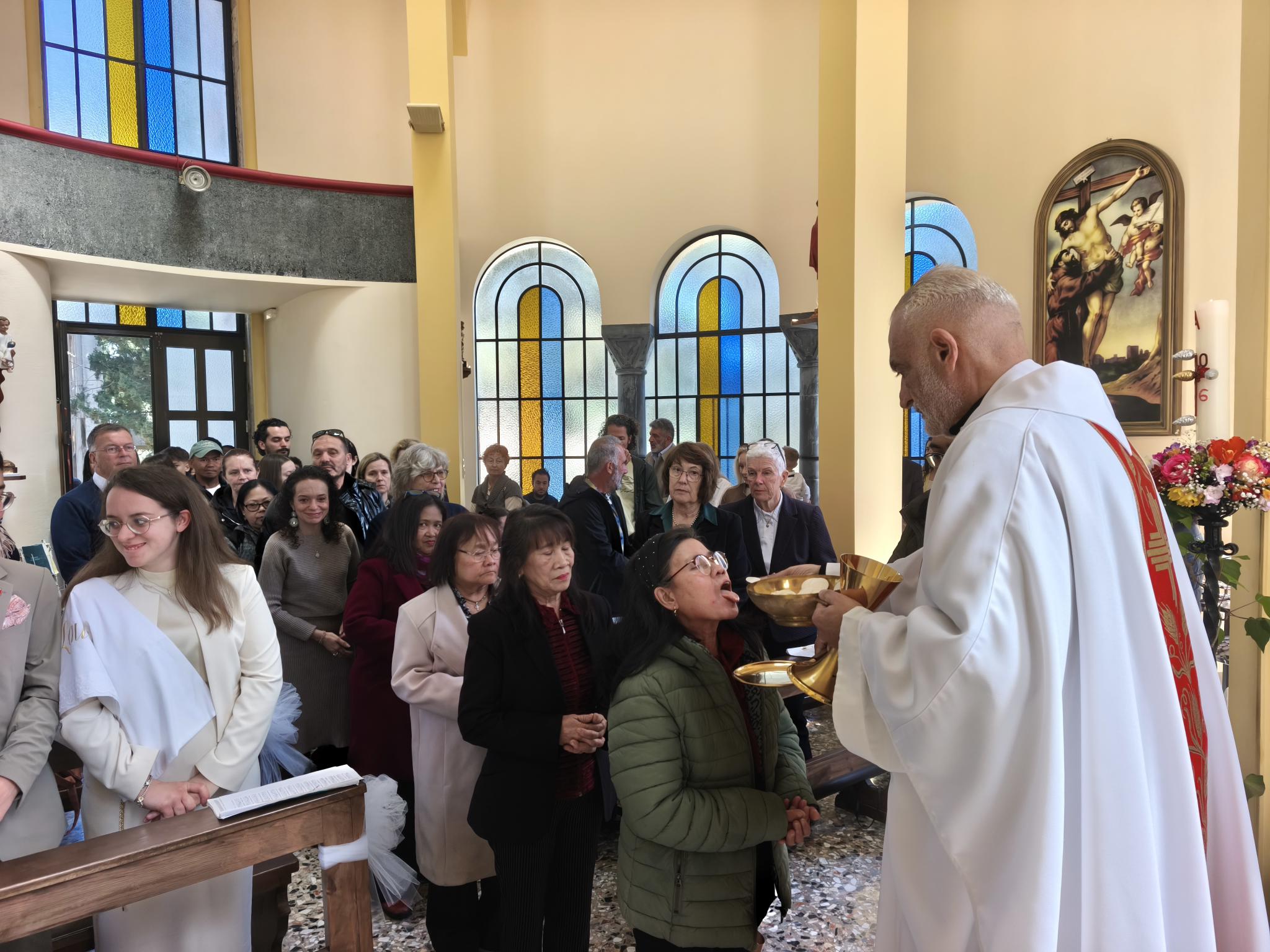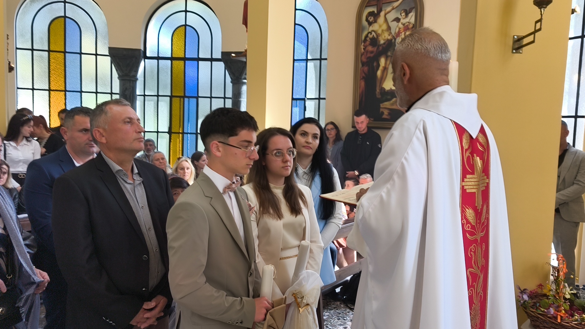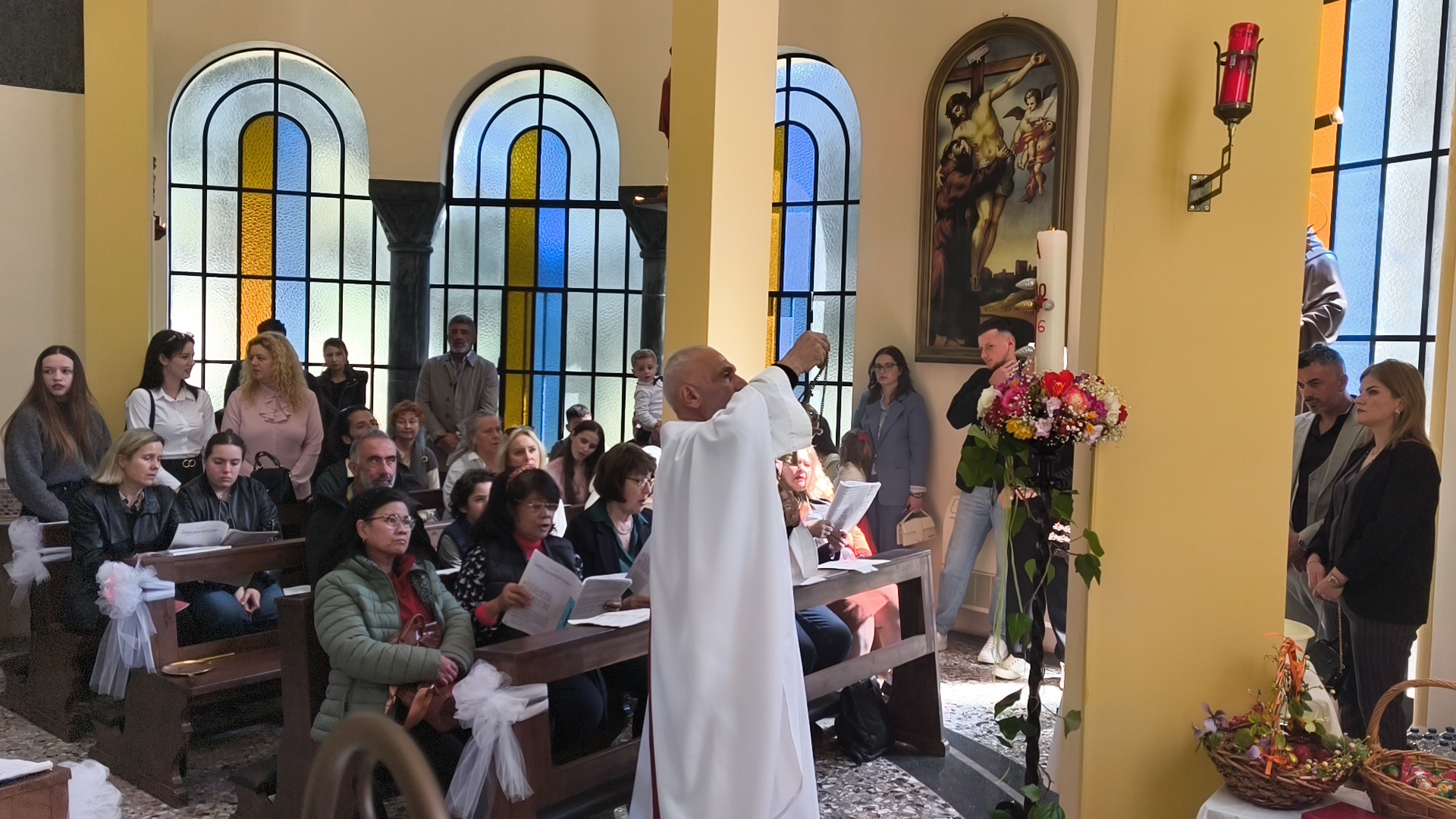 Η φετινή Αναστάσιμη λειτουργία είχε έναν επιπλέον εορταστικό τόνο, καθώς η ημέρα φωτίστηκε και με τη βάπτιση δύο νέων παιδιών. Τα αδέρφια Λαουρίτα και Μπιμπ Λεγκέγκαι βαπτίστηκαν μέσα σε κλίμα συγκίνησης, παρουσία των οικογενειών τους και ολόκληρης της ενορίας.