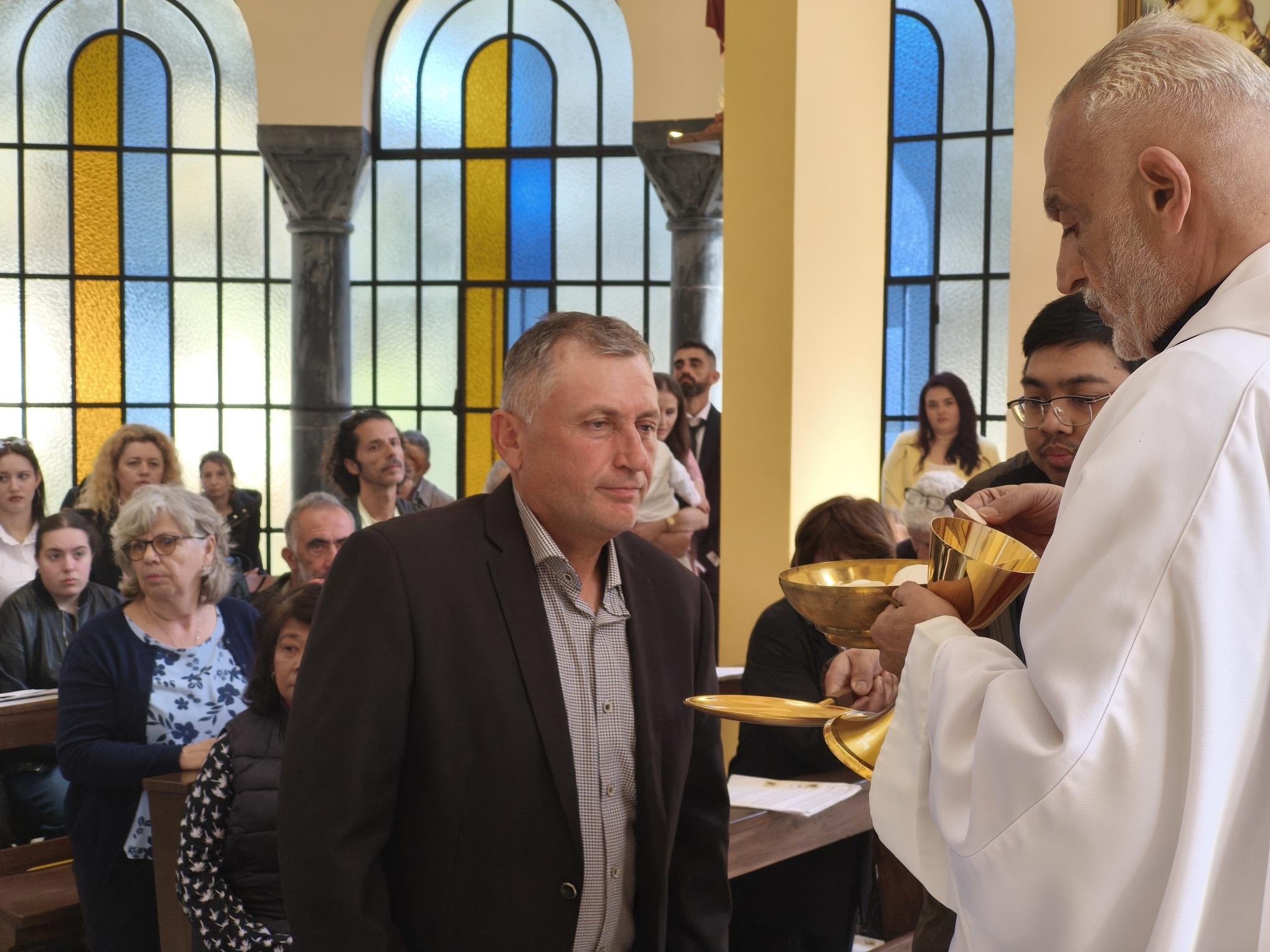 Η Θεία Λειτουργία τελέστηκε κυρίως στα Αγγλικά και τα Λατινικά, ενώ στο τέλος μοιράστηκαν πασχαλινά κεράσματα σε όλους, επισφραγίζοντας το μήνυμα της αγάπης και της αλληλεγγύης.