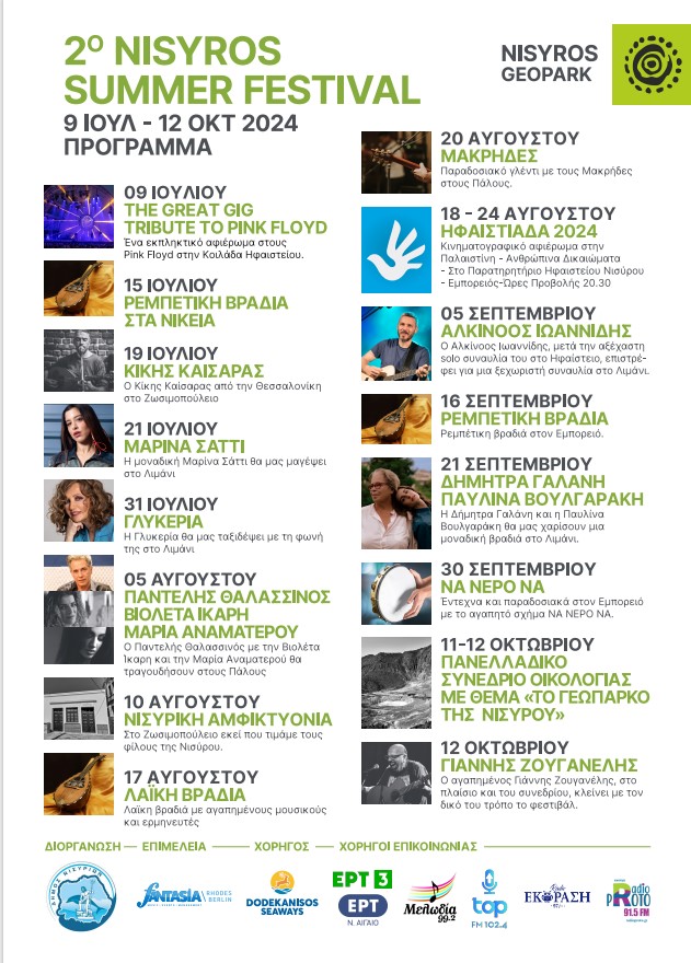 Μουσική, τραγούδια και χορός για τη διατήρηση και προβολή της μουσικής παράδοσης του τόπου μας, στηρίζοντας το παραδοσιακό τραγούδι που αποτελεί μία σημαντική παρακαταθήκη για την πολιτιστική μας κληρονομιά και με τα τραγούδια των αγαπημένων καλλιτεχνων που εκφράζονται συναισθήματα δυνατά, όπως ο έρωτας και η χαρά, η αγάπη και η λύπη.. Μια μουσική παραγωγή  αποκλειστικά για το φεστιβαλ Νισύρου που θα παρουσιαστεί ζωντανα για πρώτη φορά