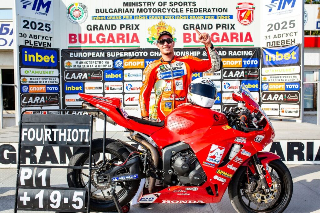 Το σαββατοκύριακο 30-31 Αυγούστου πραγματοποιήθηκε ο ένατος και δέκατος αγώνας του Ευρωπαϊκού Πρωταθλήματος BMU ταχύτητας μοτοσυκλετών στο αυτοκινητοδρόμιο PLEVEN της Βουλγαρίας όπου ο Σπύρος Μάριος Φουρθιωτης κατάφερε με την μοτοσυκλέτα του HONDA CBR600RR να πάρει 2 νίκες στην κατηγορία STK600 καθώς και 2 νίκες στην κατηγορία SSP600 γράφοντας τον ταχύτερο γύρο αγώνα και τερματίζοντας με διαφορά 19,5 δευτερόλεπτα από τον δεύτερο οδηγό της κατηγορίας SSP600 και να ανεβάσει την ελληνική σημαία στο ψηλότερο σκαλί του βάθρου.