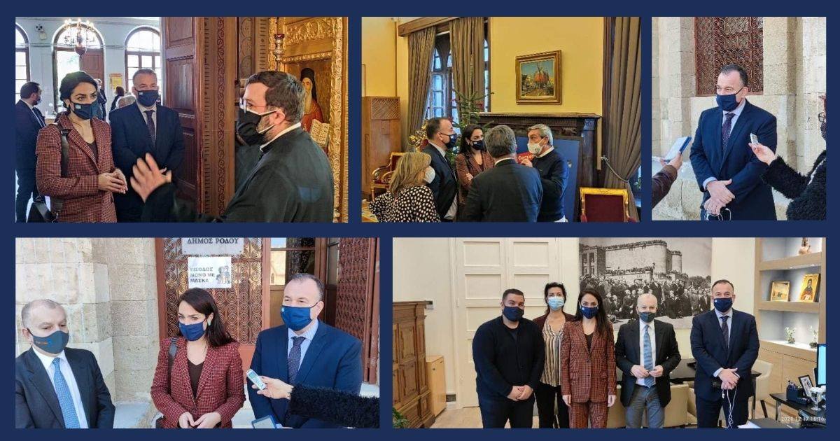 Έπειτα μετέβησαν στο Δημαρχείο , όπου είχαν συνάντηση με τον Δήμαρχο κ. Α. Καμπουράκη και τον αντιδήμαρχο οικονομικών κ. Τ. Καμπούρη, όπου συζήτησαν για τα μέτρα κοινωνικής πολιτικής του Δήμου Ρόδου, που υλοποιούνται για την στήριξη των ευπαθών ομάδων.