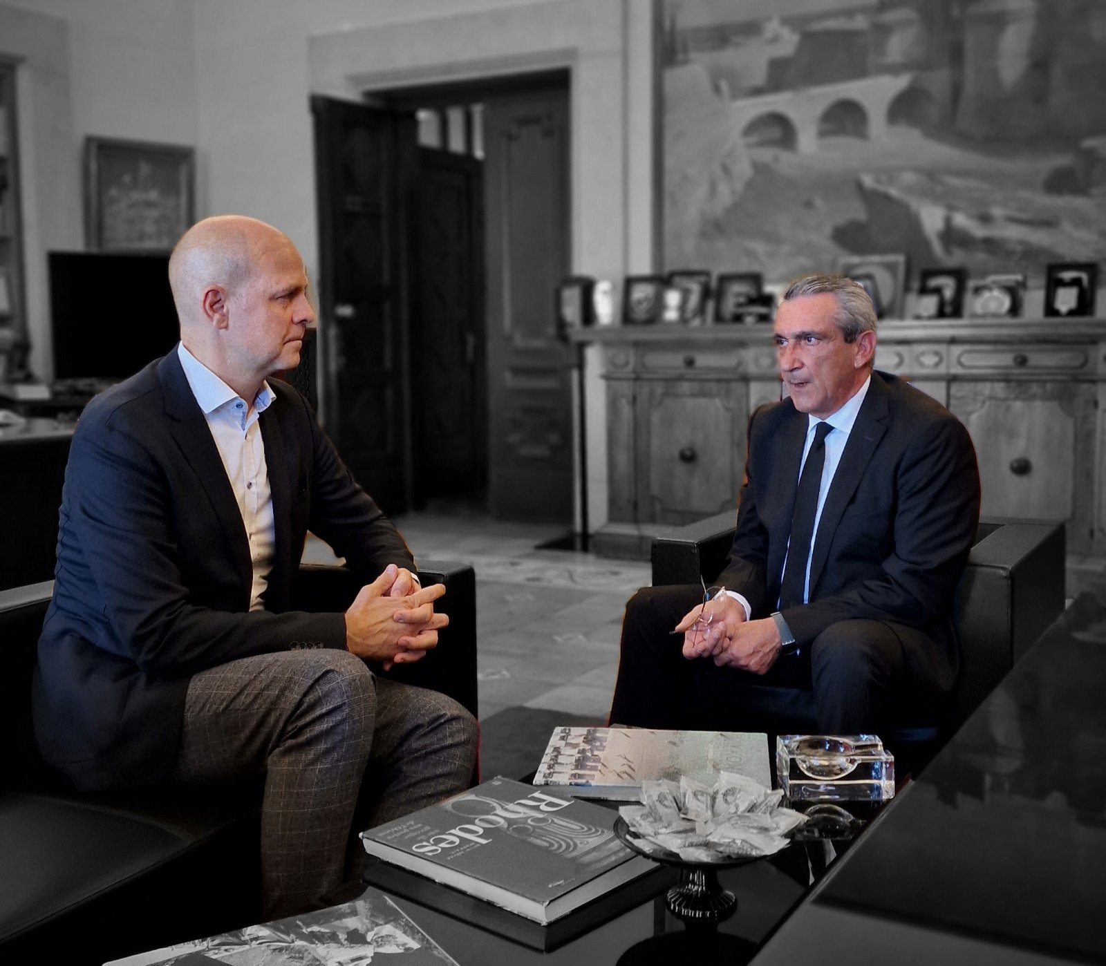 Τέλος, o Περιφερειάρχης και ο Διευθύνων Σύμβουλος της Fraport Greece αντάλλαξαν απόψεις σχετικά με τη συμμετοχή της εταιρείας στο The Rhodes Co–Lab, την πρωτοβουλία και το πενταετές πρόγραμμα που πρόκειται να μετατρέψει τη Ρόδο στον 1ο βιώσιμο τουριστικό προορισμό παγκοσμίως.
