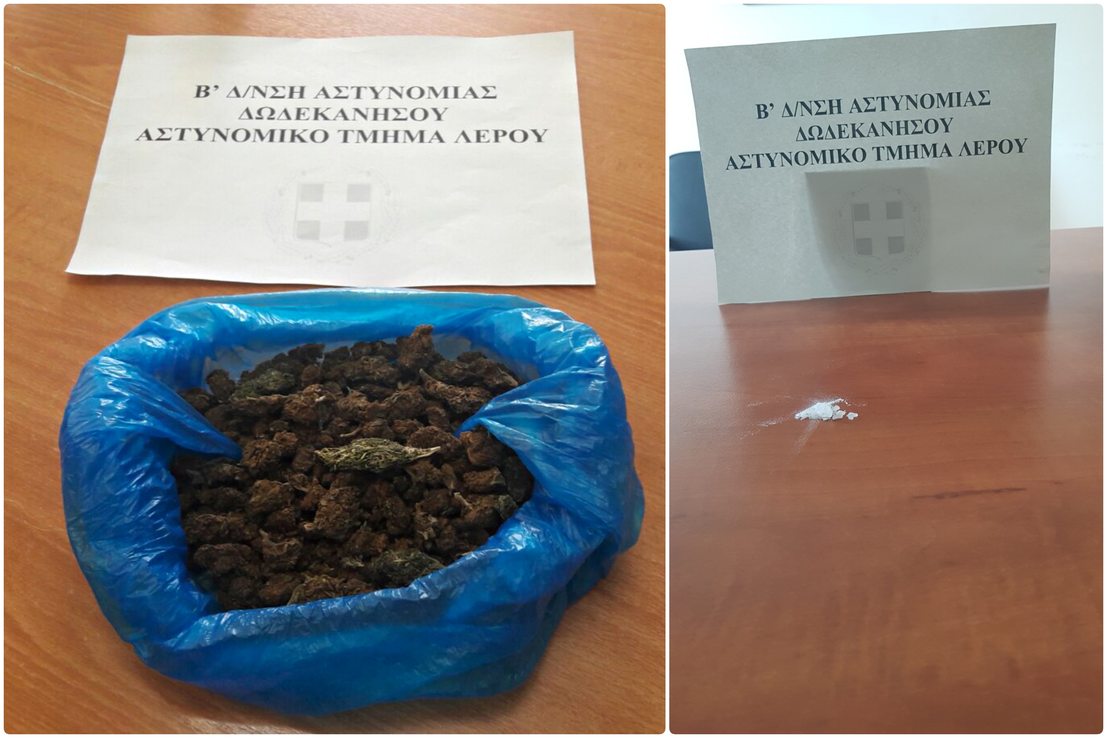Συνελήφθησαν χθες (23 Απριλίου 2020) στη Λέρο, από αστυνομικούς του Αστυνομικού Τμήματος Λέρου, δύο αλλοδαποί ηλικίας 28 και 32 ετών κατηγορούμενοι, κατά περίπτωση, για κατοχή ναρκωτικών ουσιών.