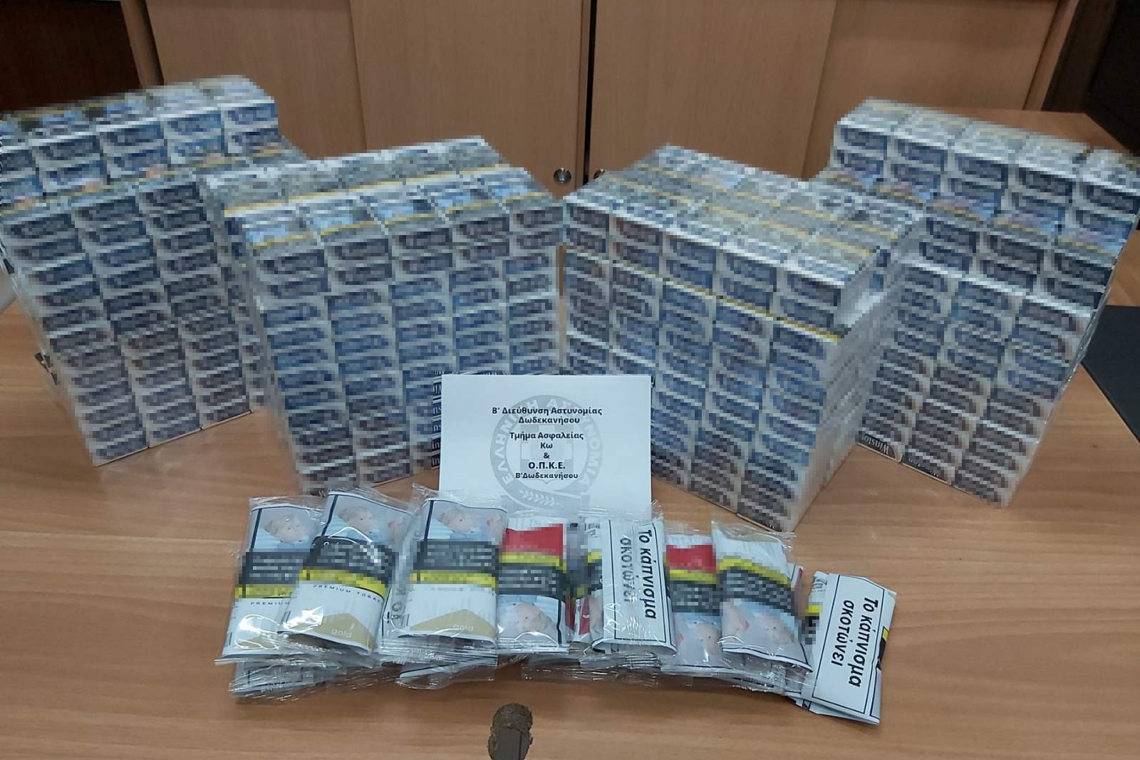 Ειδικότερα, στο πλαίσιο στοχευμένων επιχειρησιακών δράσεων της Γενικής Περιφερειακής Αστυνομικής Διεύθυνσης Νοτίου Αιγαίου για την καταπολέμηση του λαθρεμπορίου καπνικών προϊόντων, πραγματοποιήθηκε έλεγχος στον κατηγορούμενο κατά την άφιξή του στο νησί με πλοίο της γραμμής από Πειραιά κατά τον οποίο βρέθηκαν στην κατοχή του και κατασχέθηκαν: