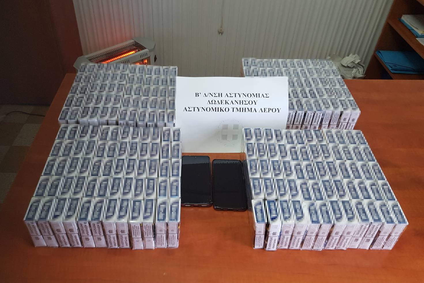 Την 29-02-2020 το μεσημέρι συνελήφθη στη Λέρο, από αστυνομικούς του Αστυνομικού Τμήματος Λέρου, δύο αλλοδαποί ηλικίας 23 και 30 ετών στην κατοχή των οποίων βρέθηκαν και κατασχέθηκαν -240- πακέτα τσιγάρα, χωρίς ειδική ταινία φορολόγησης (επισυνάπτεται φωτογραφία).