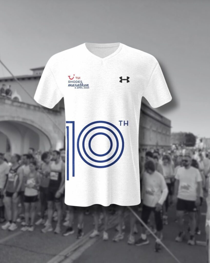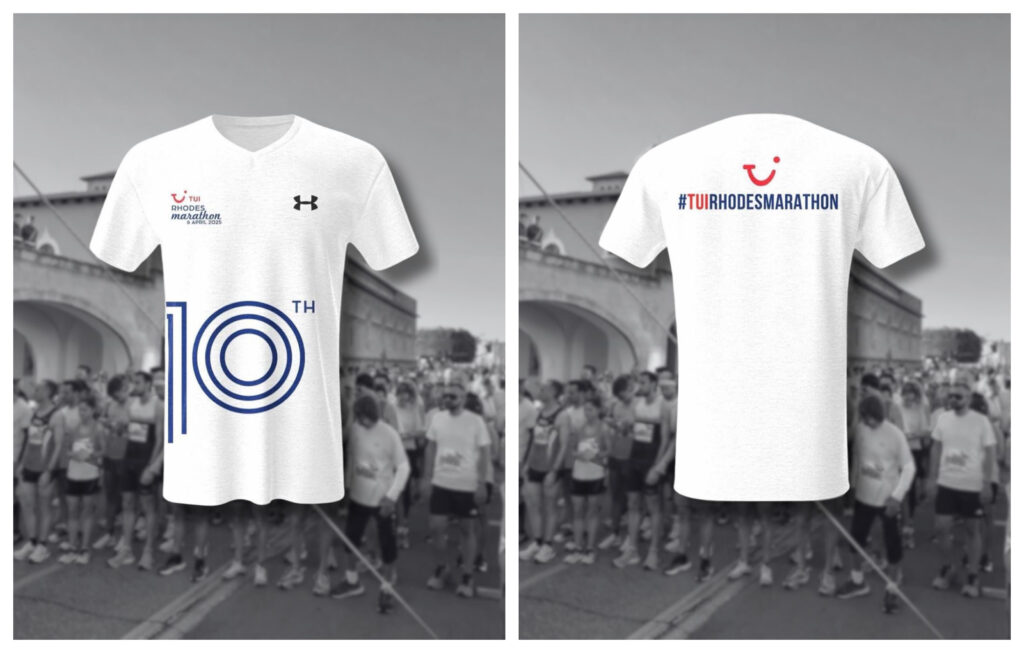Το πανέμορφο t–shirt για τον επετειακό 10ο Tui Mαραθώνιο Ρόδου. Στις 31 Μαρτίου λήγει η διορία εγγραφών
