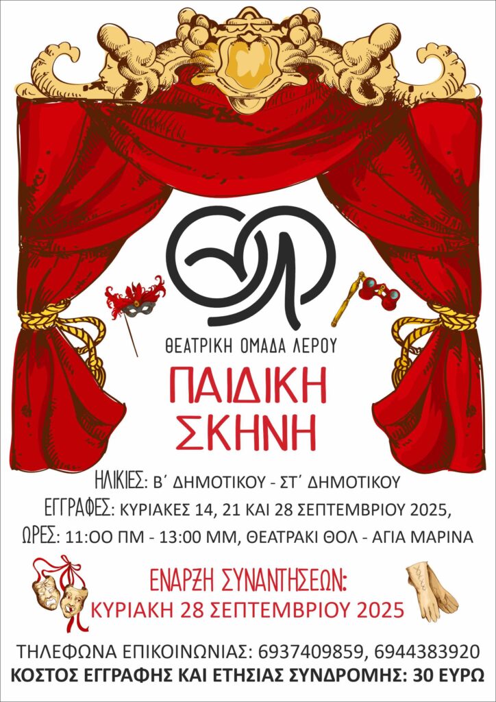 Η Θεατρική Ομάδα Λέρου ξεκινάει και φέτος τη δράση της, για 37η χρονιά, δυναμικά και δημιουργικά και καλεί μικρούς και μεγάλους να γίνουν μέλη της!