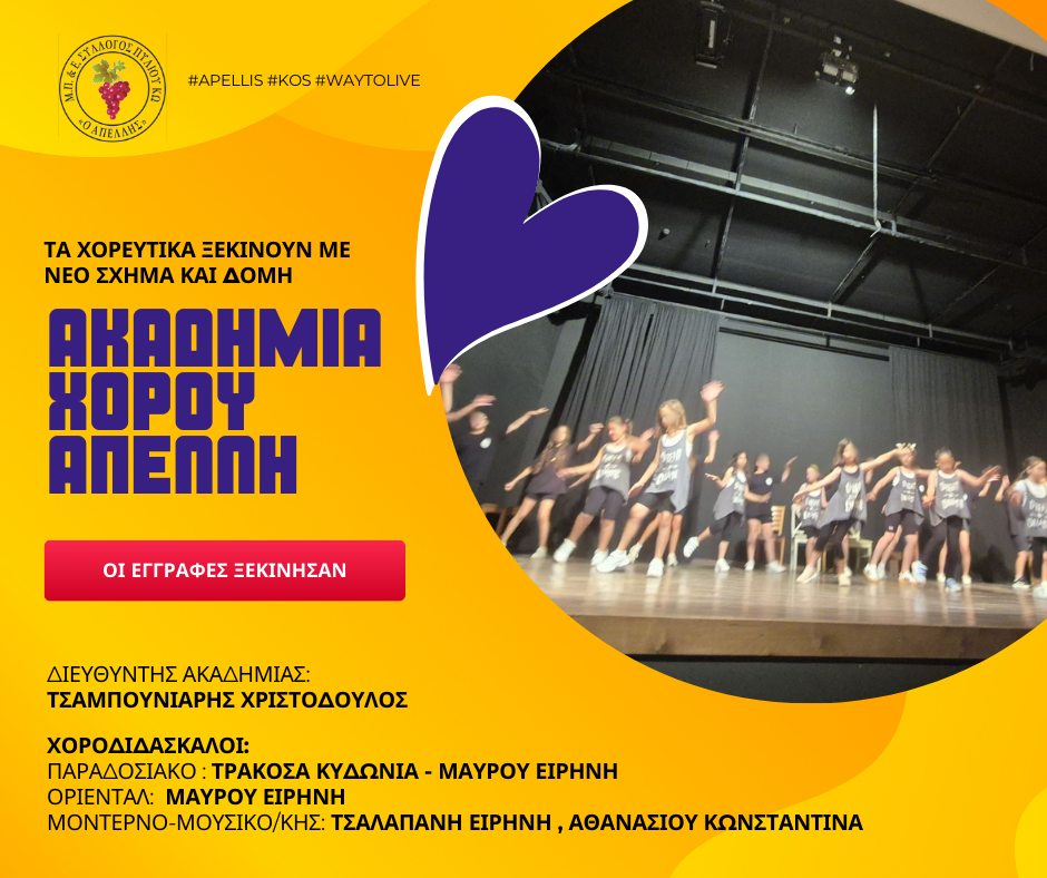 Η Ακαδημία Χορευτικών του ΜΠΕΣ ΑΠΕΛΛΗ ανακοινώνει την έναρξη των εγγραφών για τη νέα χορευτική περίοδο 2025-2026.