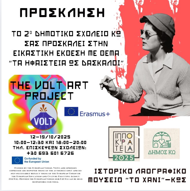 Εικαστική έκθεση ” The Volt Art Project” : Εγκαίνια Κυριακή 12 Οκτωβρίου Στο πλαίσιο των θερινών πολιτιστικών εκδηλώσεων «Ιπποκράτεια 2025» το Τμήμα Πολιτισμού Δήμου Κω σας ενημερώνει για τις προσεχείς εκδηλώσεις: από ΚΥΡΙΑΚΗ 12/10/25 & έως ΚΥΡΙΑΚΗ 19/10/25 ΕΙΚΑΣΤΙΚΗ ΕΚΘΕΣΗ “THE VOLT ART PROJECT” σε συνεργασία με το 2ο ΔΗΜΟΤΙΚΟ ΣΧΟΛΕΙΟ ΚΩ ΙΣΤΟΡΙΚΟ & […]