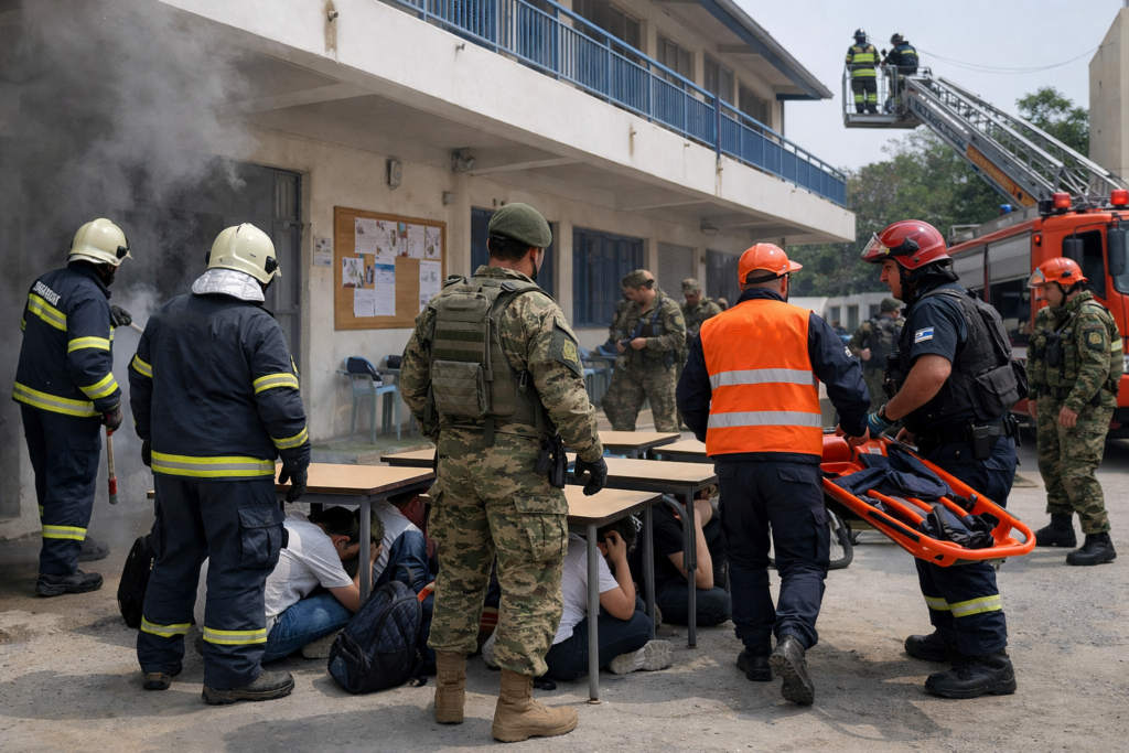 Άσκηση Προσομοίωσης Σεισμού στο 1ο Ημερήσιο ΕΠΑΛ Κω με τη Συμμετοχή Πυροσβεστικής και Πολιτικής Προστασίας