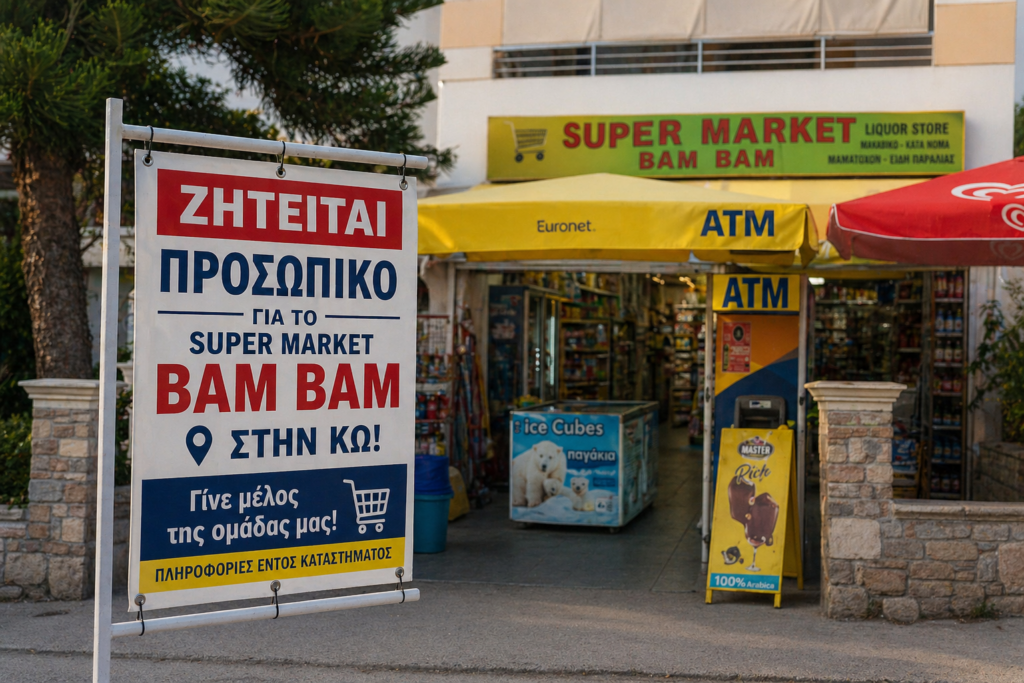 Ζητείται προσωπικό για το Super Market BAM BAM στην Κω!