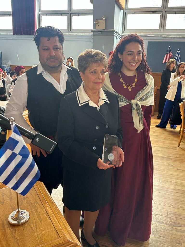 Ο Πρόεδρος έκανε επίσης ειδική αναφορά στον αείμνηστο Αντώνη Βεζυρόπουλο, τον Καλύμνιο βοσκό των Ιμίων, τονίζοντας ότι η ζωή και η δράση του αποτελούν σύμβολο της διαχρονικής ελληνικής παρουσίας στα νησιωτικά σύνορα και ενσαρκώνουν τη δωδεκανησιακή ψυχή και τις αξίες της. “Στο πρόσωπό του κυρίου Αντώνη, τιμούμε όλους τους Δωδεκανήσιους, όλους τους Έλληνες που με τη ζωή τους διασφαλίζουν την επιτήρηση και την προστασία της ελληνικής επικράτειας, με κάθε τρόπο — ακόμη κι αν πρόκειται για την τελευταία βραχονησίδα.” ανέφερε ο Πρόεδρος της Δωδεκανησιακής Ομοσπονδίας Αμερικής κ. Νίκος Καρτάλης. Στη συνέχεια παρουσίασε την οικογένεια του αειμνήστου — την κόρη του Σεβαστή Παντελή, τον μικρότερο γιο του Μίκη Βεζυρόπουλο και τη δισέγγονή του Ειρήνη Πανοπούλου — οι οποίοι παρέλαβαν την τιμητική διάκριση στη μνήμη του εκ μέρους της Δωδεκανησιακής Ομοσπονδίας Αμερικής. Η δισέγγονη του κ. Βεζυρόπουλου διάβασε μια σύντομη βιογραφία του προπάππου της, ενώ η κόρη του κ. Παντελή εξέφρασε τη συγκίνησή της για την τιμή προς τον πατέρα της.