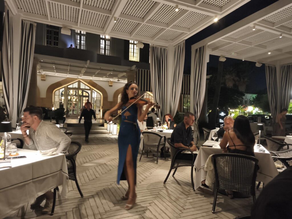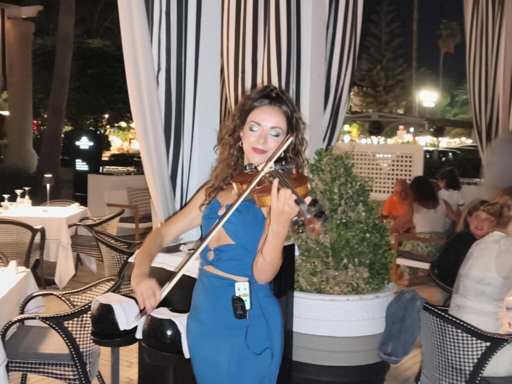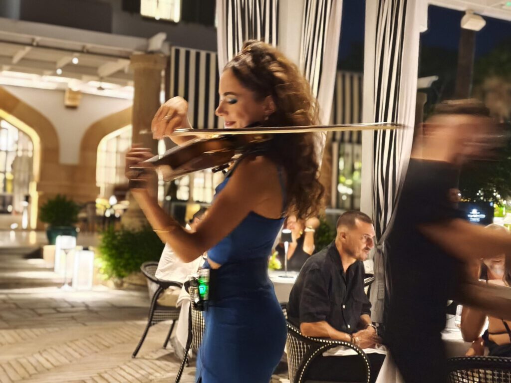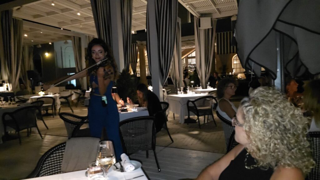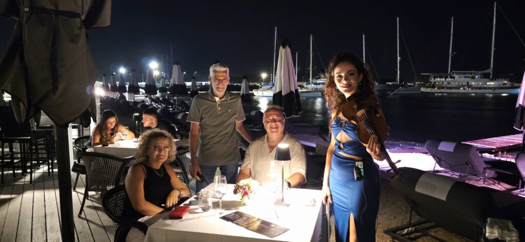 Η ατμόσφαιρα συμπληρώθηκε ιδανικά με την βιολίστρια Στέλλα Ζιοπούλου που με την παρουσία και τις μελωδίες της έντυσε το σκηνικό με έναν ξεχωριστό ρομαντισμό κάτω από το έναστρο ουρανό με θέα το πέλαγος και την ιστορία του νησιού.