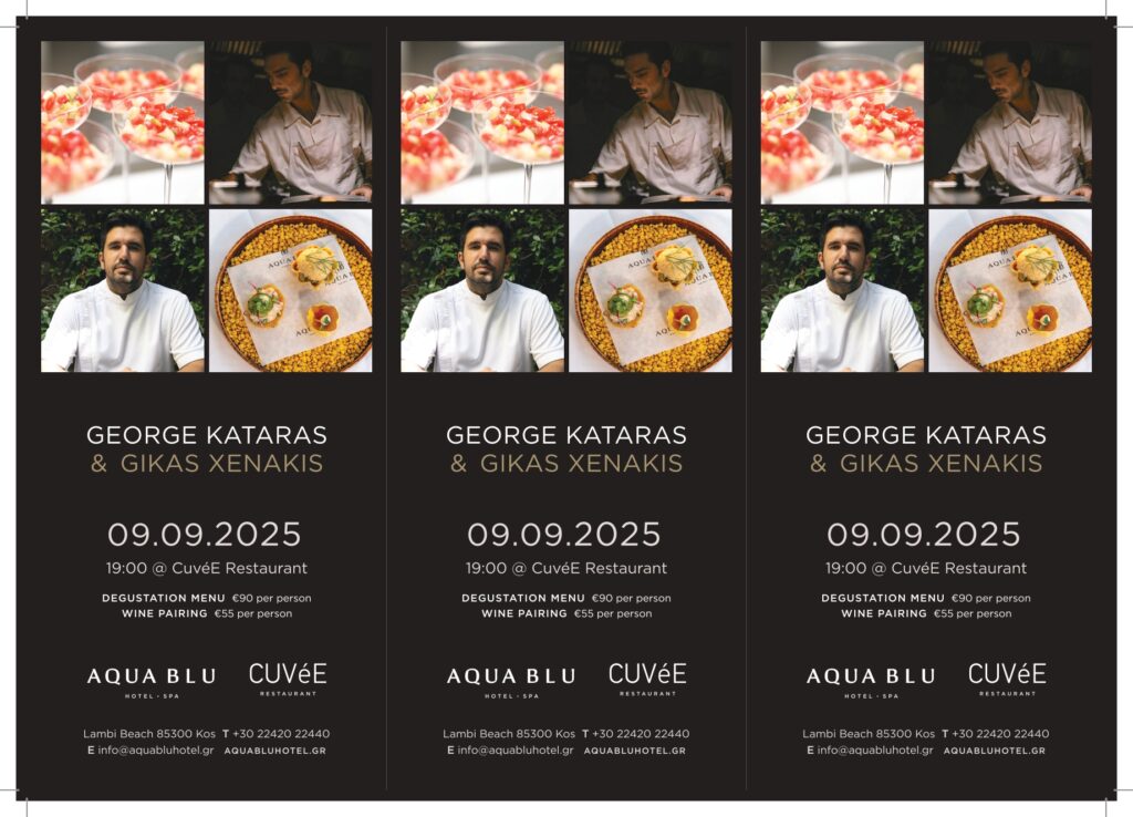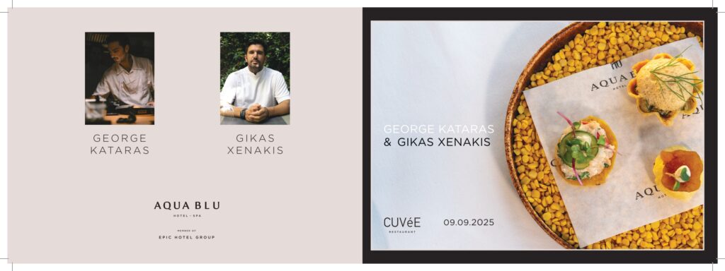 Aqua Blu Boutique Hotel Cuvee Restaurant: Η συνάντηση των σεφ Γκίκα Ξενάκη και Γιώργο Κατάρα σε μία γαστρονομική συμφωνία την Τρίτη 9 Σεπτεμβρίου – Περιορισμένες θέσεις