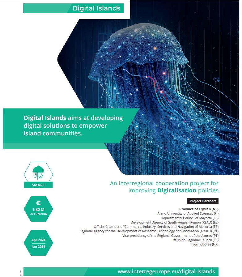 Συμμετέχουσες νησιωτικές περιφέρειες: Περιφέρεια Νοτίου Αιγαίου (Ελλάδα), Cres (Κροατία), Åland (Φινλανδία), Azores και Madeira (Πορτογαλία), Réunion και Mayotte (Γαλλία), Mallorca (Ισπανία), Fryslân (Ολλανδία), συνεργάζονται στενά για ένα πιο «έξυπνο» και ψηφιακά ανεπτυγμένο μέλλον των νησιών τους.