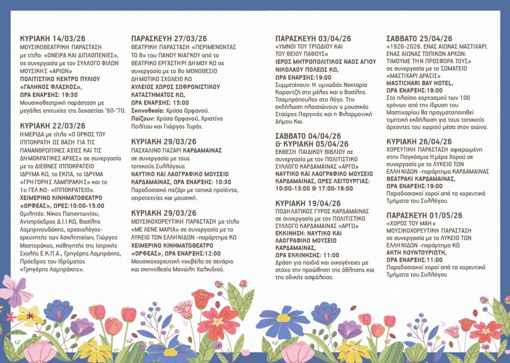 Στο πλαίσιο των Χειμερινών Πολιτιστικών Εκδηλώσεων «Ιπποκράτεια 2025-26» το Τμήμα Πολιτισμού Δήμου Κω σας ενημερώνει: